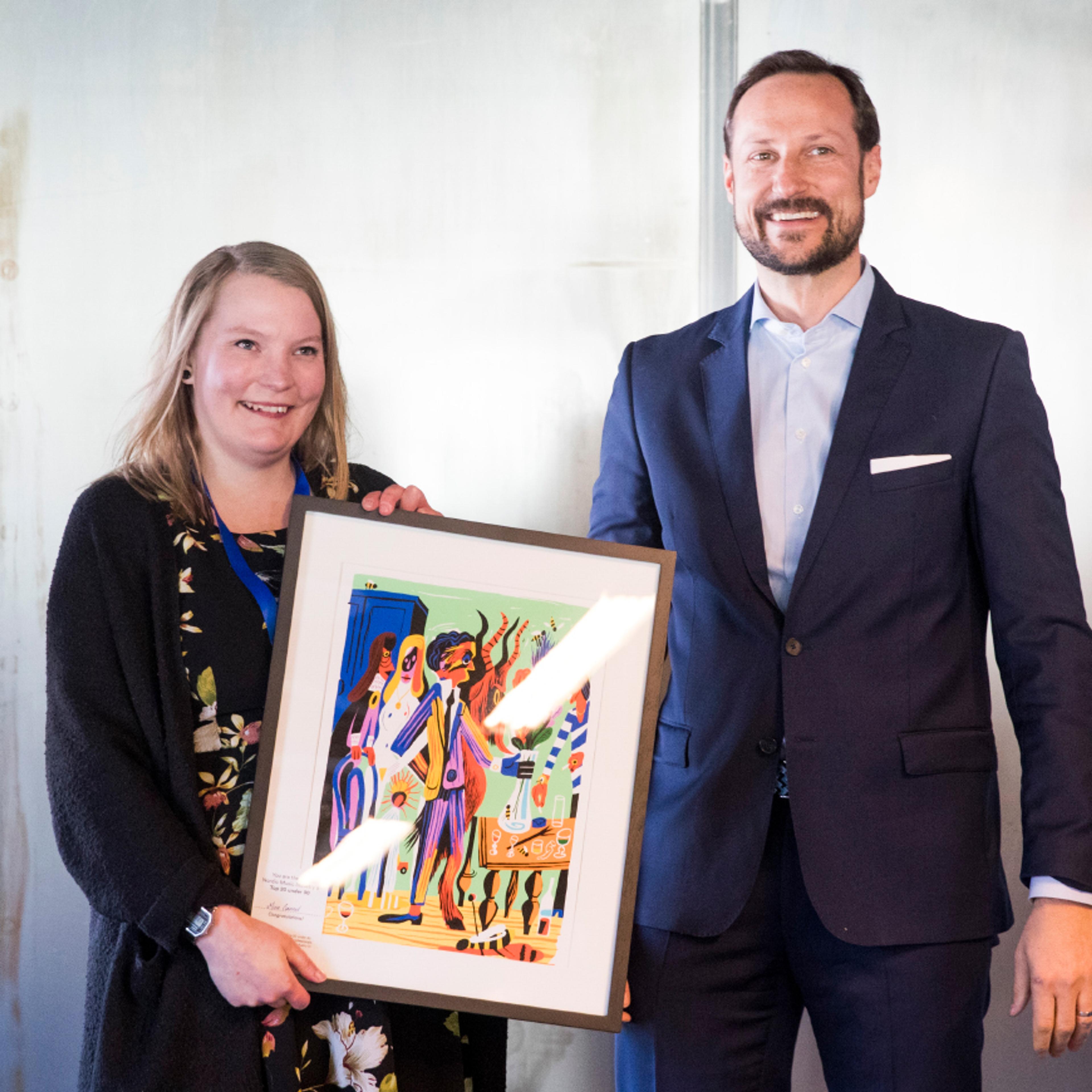 Musikkfestivalen by:Larm er i gang. I dag var Den Høgvørde Kronprinsen til stades for å dele ut diplom til dagleg leiar Mina Evenrud og 19 andre unge bransjefolk.
