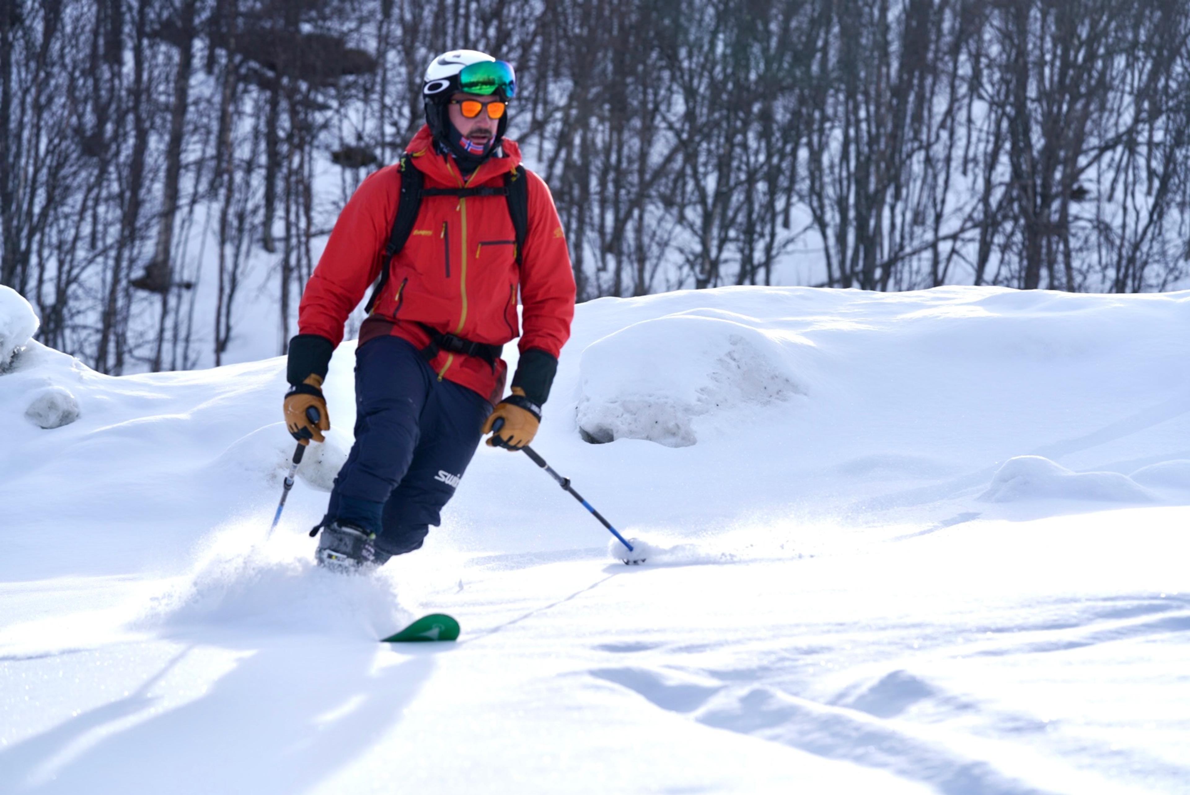 Under sitt besøk til Narvik fikk Kronprinsen også teste skiferdigheter under en guidet skitur i Fagernesfjellet. De bratte fjellsidene som stuper ned i fjorden gjør dette til en spektakulær opplevelse.