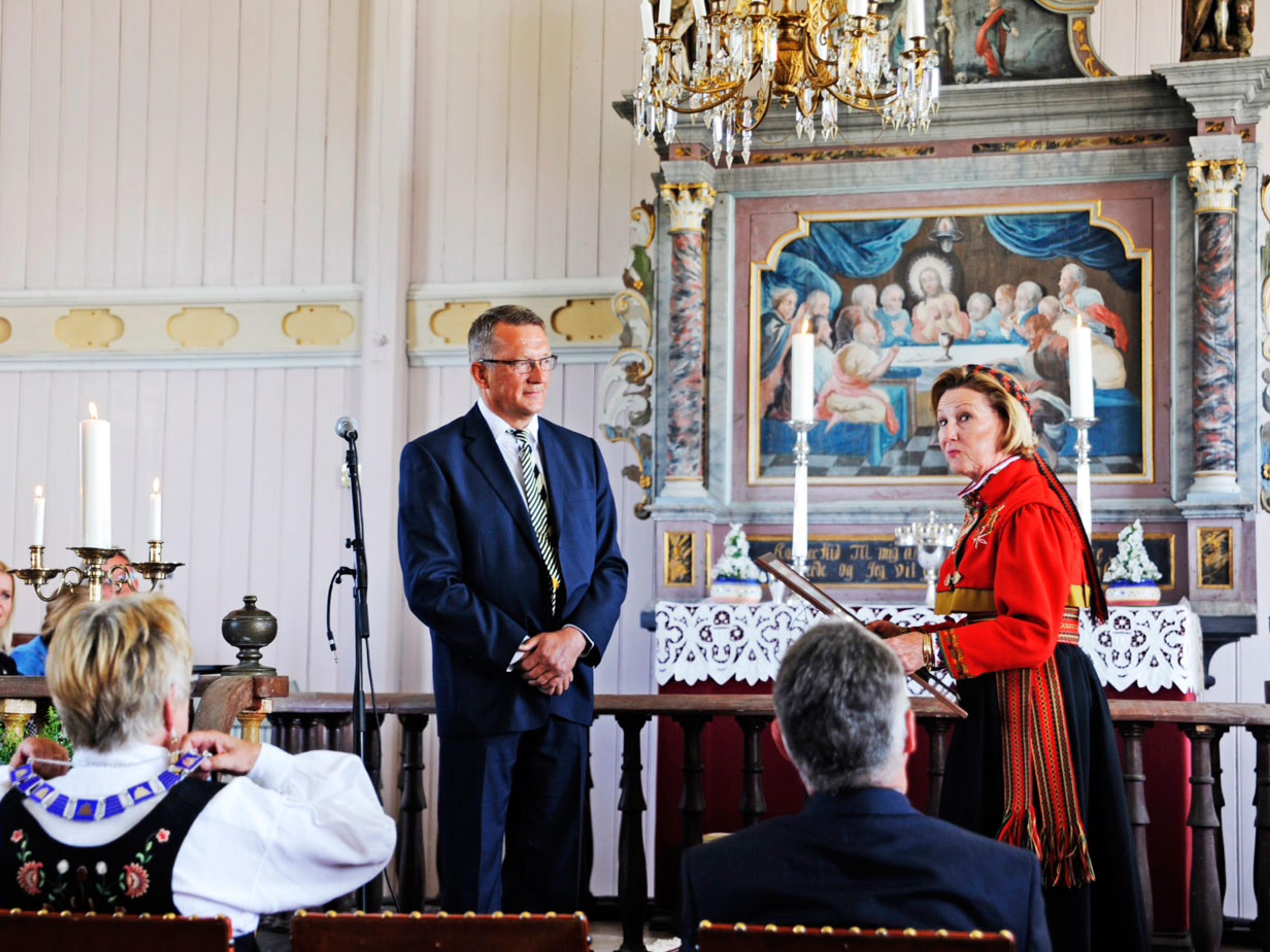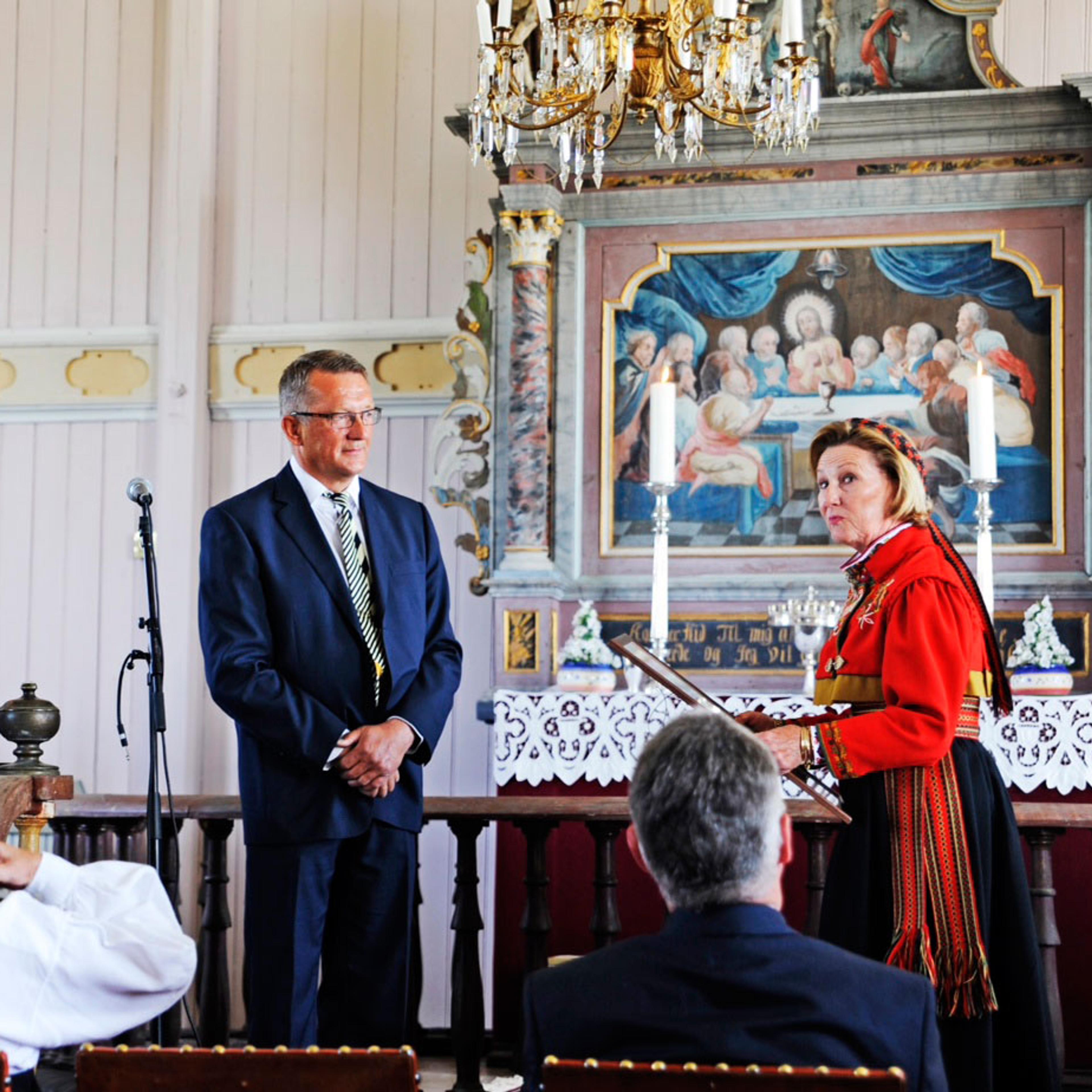 Hennar Majestet Dronning Sonja var til stades da gjenopninga av Helgøy kyrkje i Troms vart markert søndag. Rundt 300 menneske var med på å feire ei nyoppussa og 125 år gammal kyrkje.