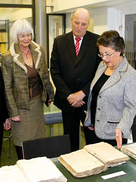 H.M. Kongen fikk først se utvalgt materiale fra Nasjonalbibliotekets samling, blant annet håndskrevet gammelnorsk og latinsk materiale. Deretter deltok Kongen på første del av fagseminaret, hvor Forsknings- og høyere utdanningsminister Tora Aasland, professor Torgrim Titlestad og professor Gisli Sigurdsson fra Island, belyste Tormod Torfæus liv og virke