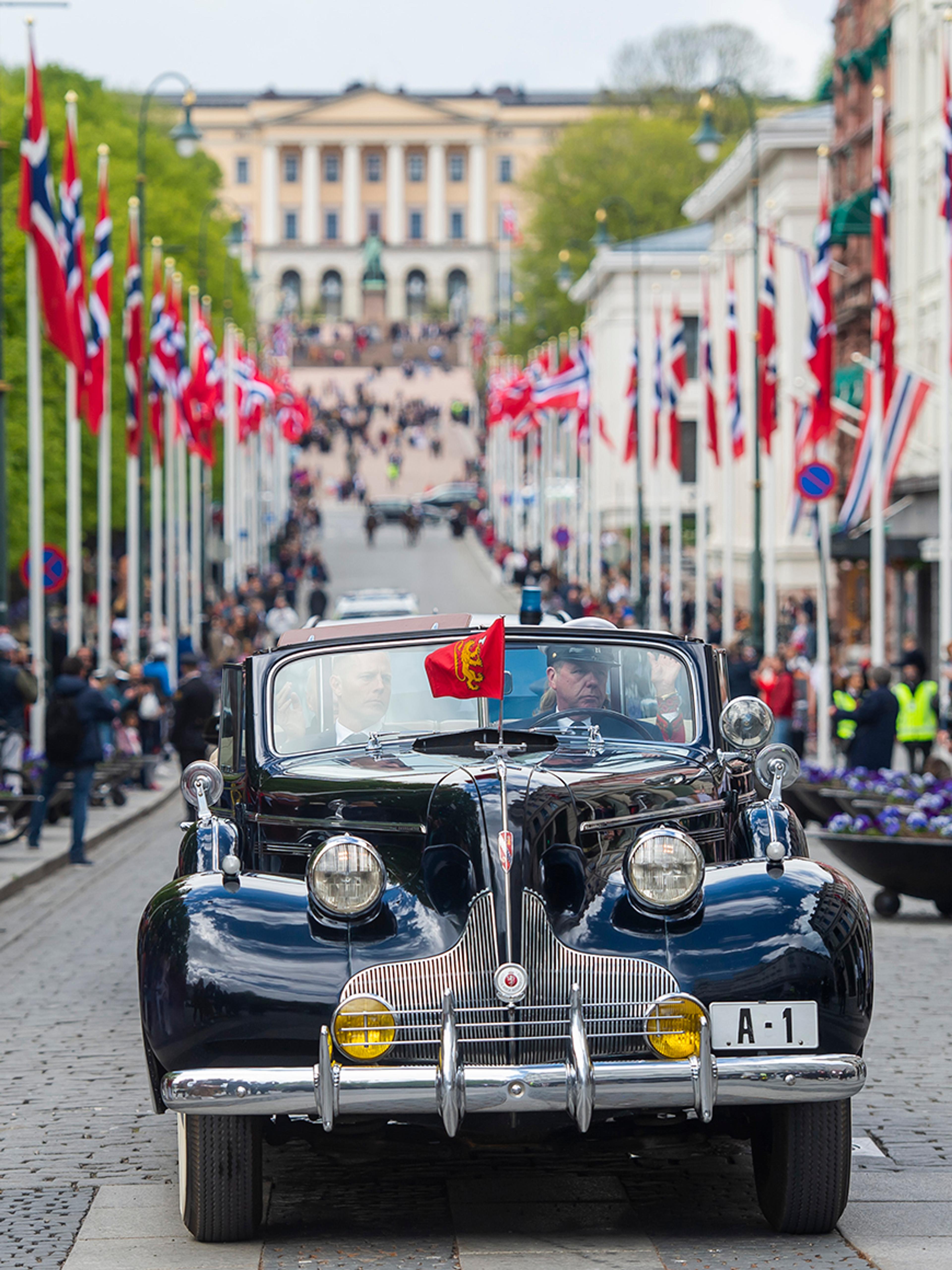 Bak kom Kronprins Olav og barna i en tilsvarende bil, C-1473, en 1938-modell, som tilhørte familien Nagell-Erichsen. Den samme bilen ble brukt da Kronprins Olav ble kjørt rundt i Oslos gater under frigjøringsdagene i mai 1945, med Max Manus som væpnet vakt i forsetet. A-1 returnerte først i juni.
