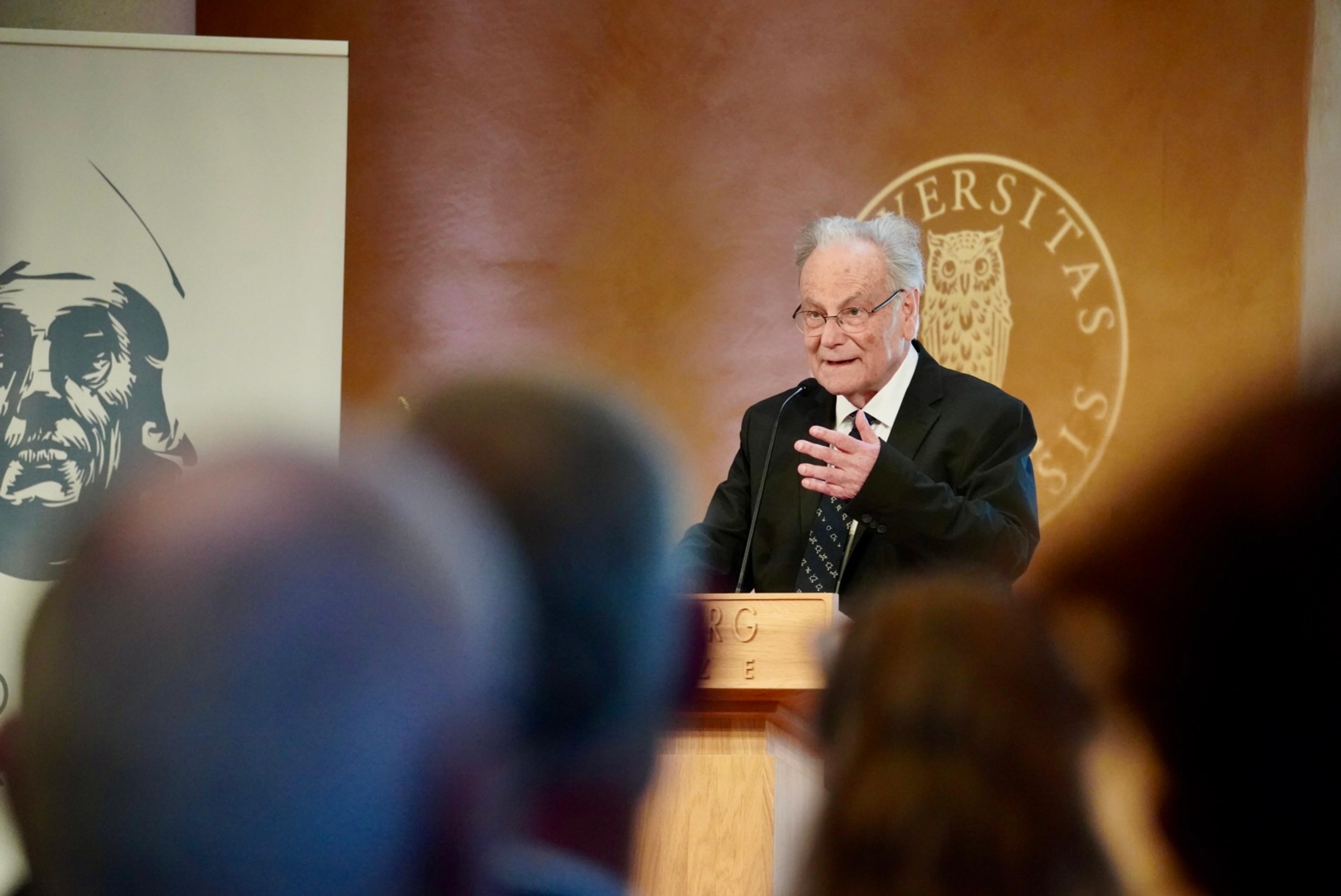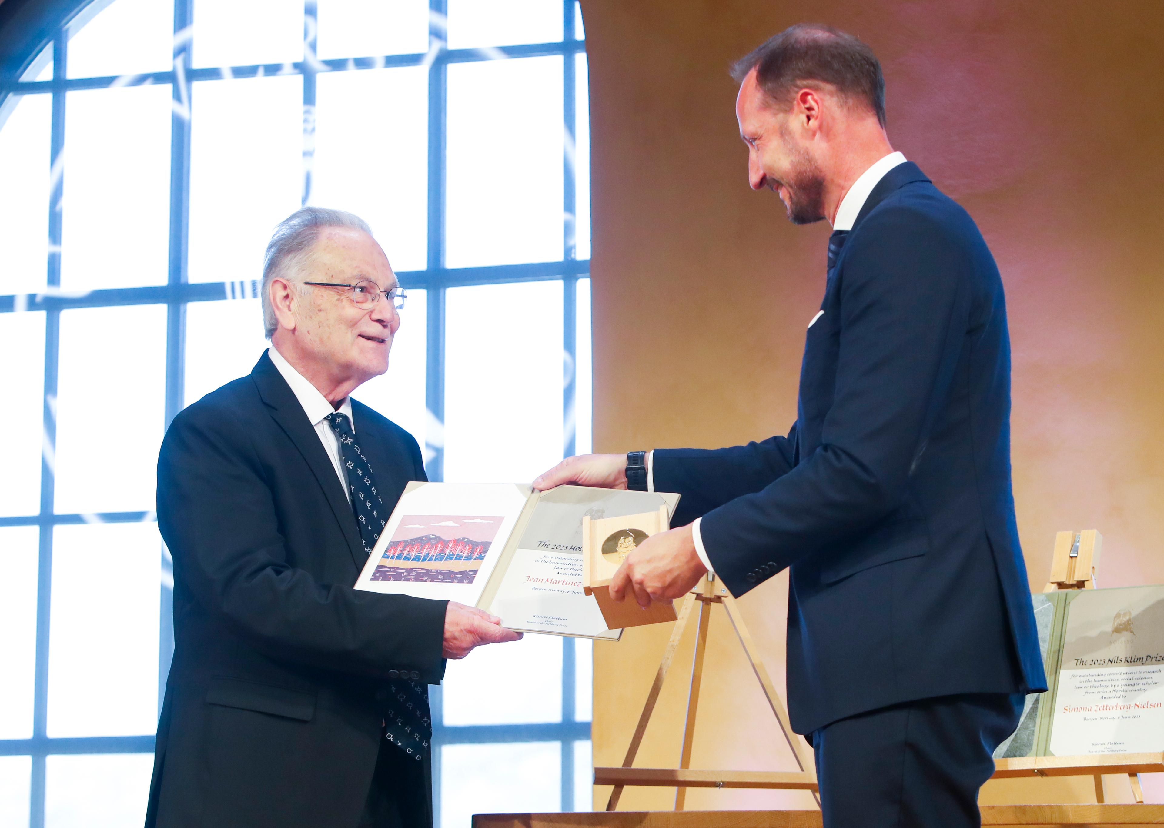Kronprinsen hadde æra av å overrekkje prisen til årets Holbergprisvinnar i Universitetsaulaen ved Universitetet i Bergen.