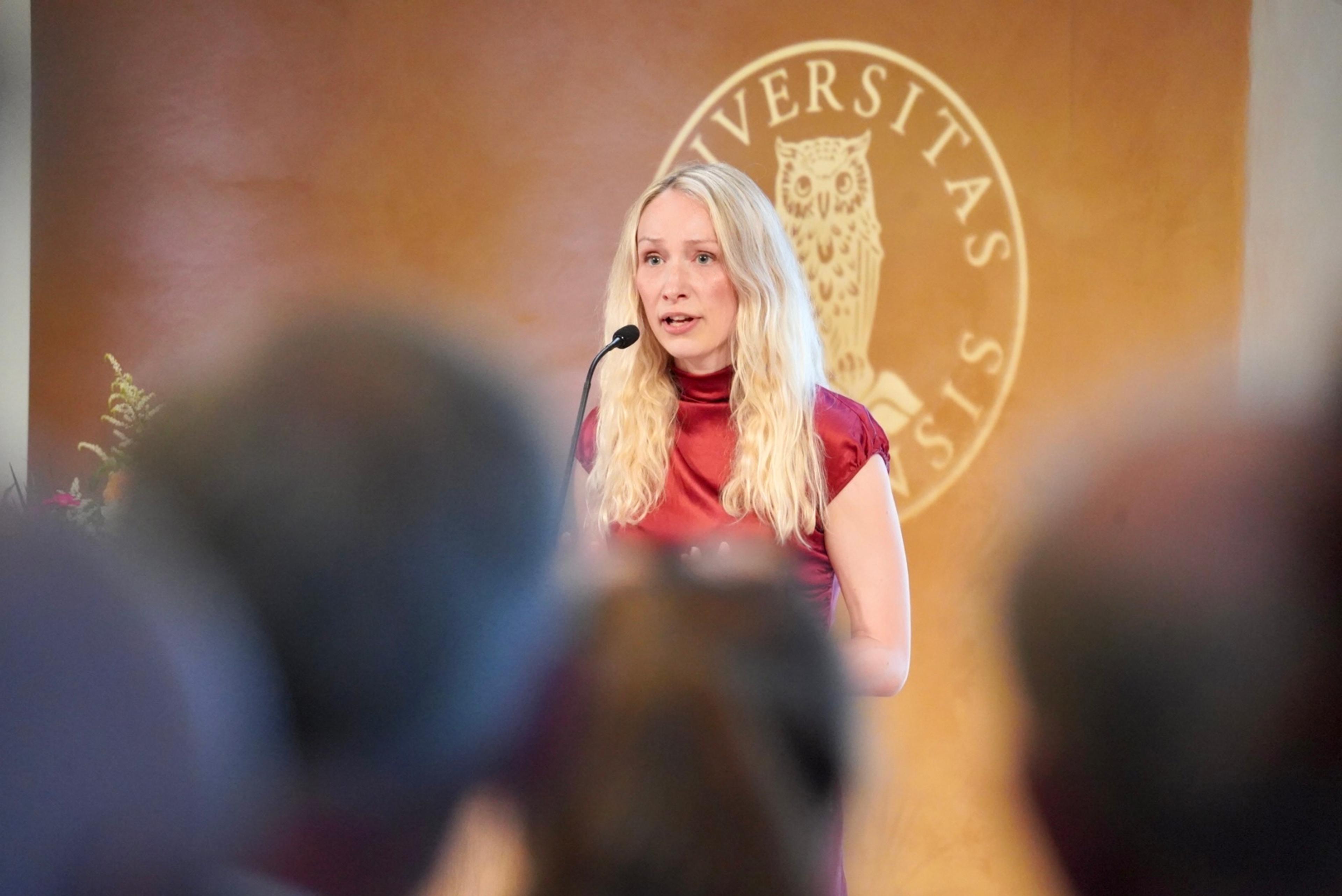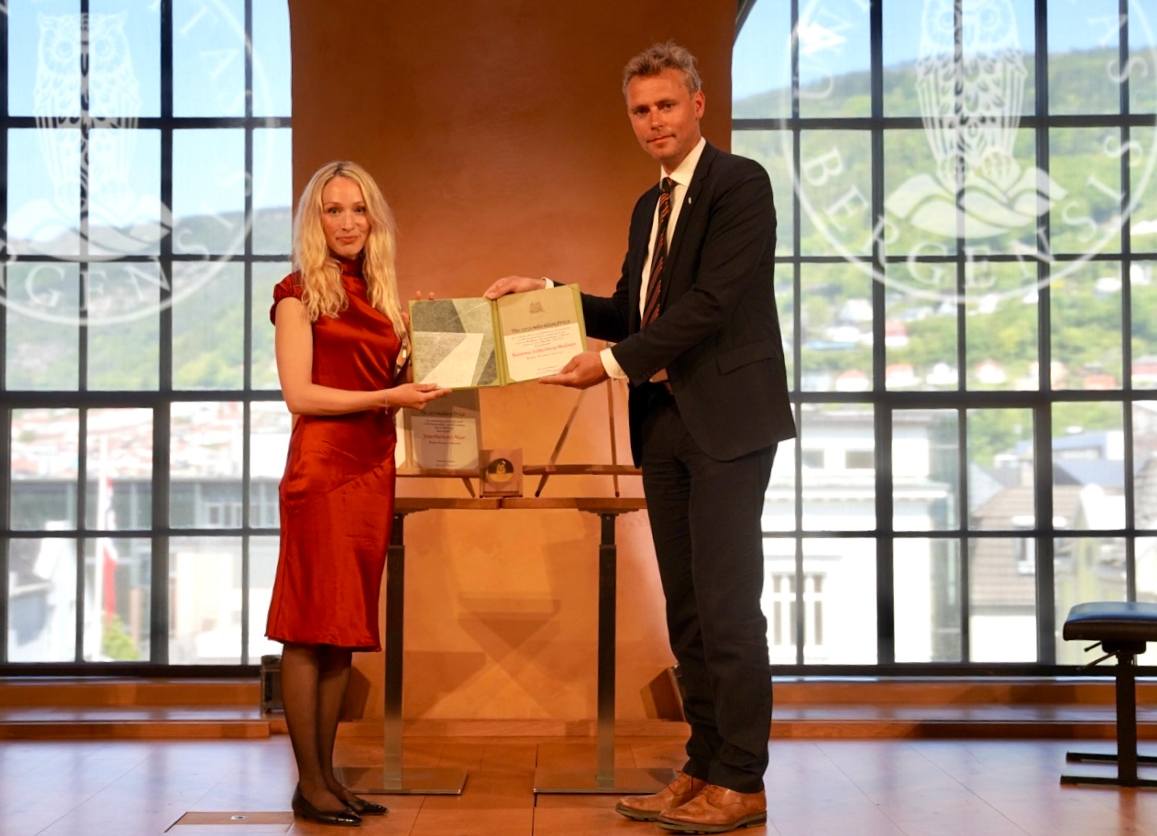 Statsråd Ola Borten Moe deltok òg under seremonien og hadde gleda av å overrekkje Nils Klim-prisen til den danske forskaren Simona Zetterberg-Nielsen. Prisen er verd 500 000 kroner – og blir kvart år tildelt ein yngre forskar som har utmerkt seg innan eit av fagområda til Holbergprisen.