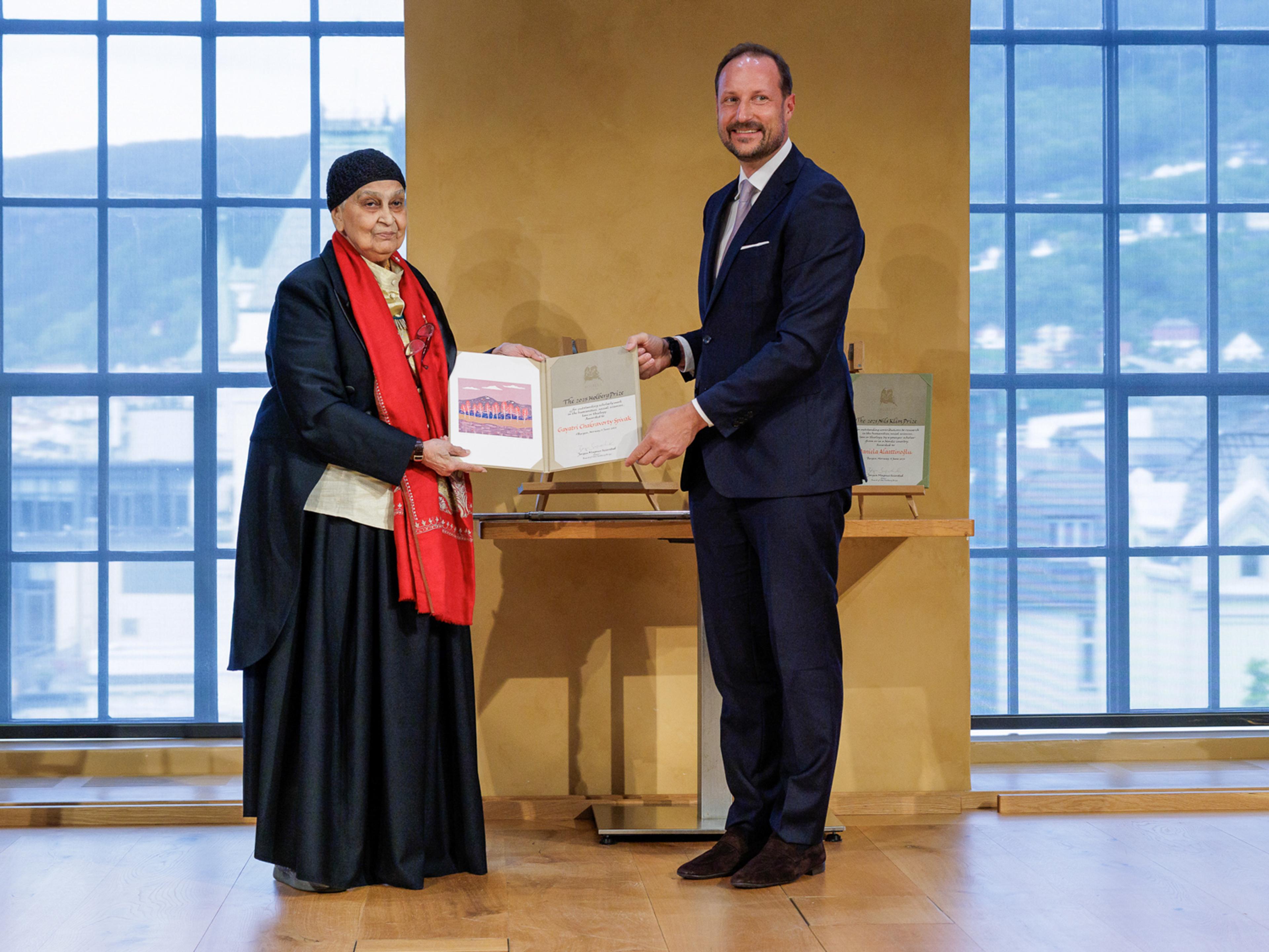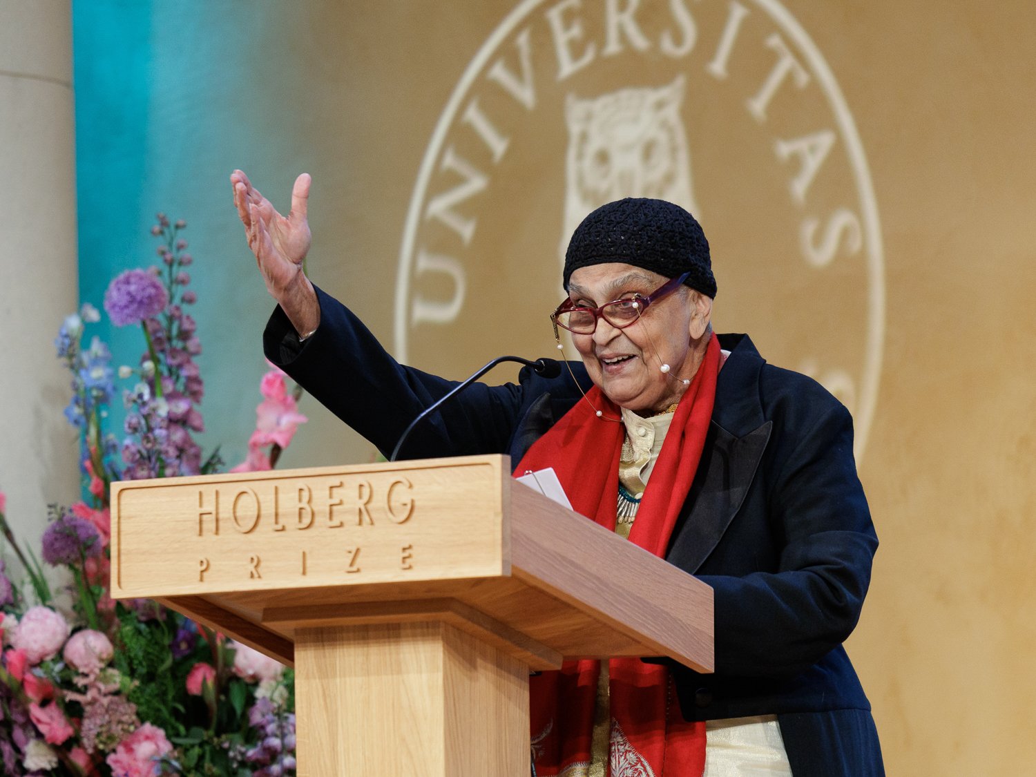 Hans Kongelige Høyhet Kronprinsen overrakte Holbergprisen 2025 til den indiske forskeren Gayatri Chakravorty Spivak, for hennes banebrytende forskning innen litteraturvitenskap og filosofi.