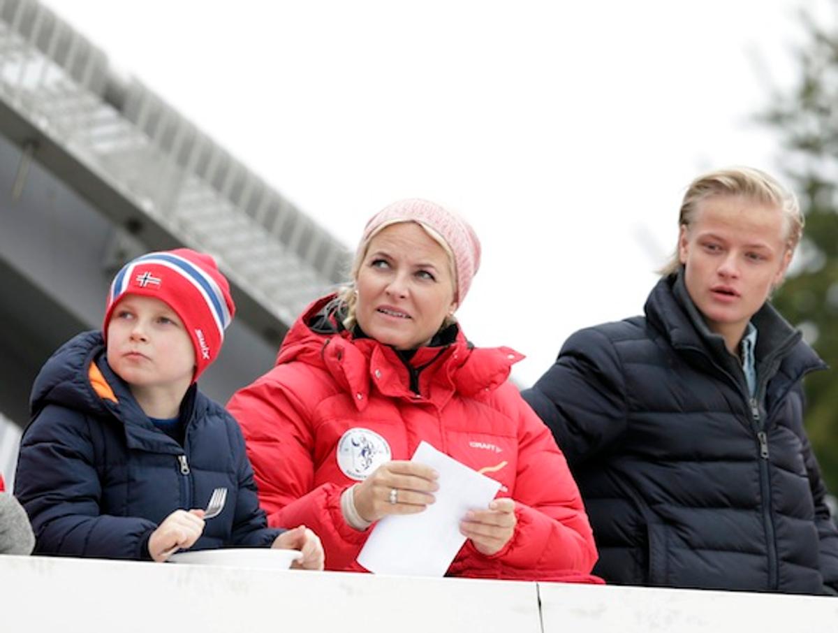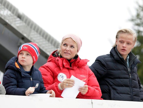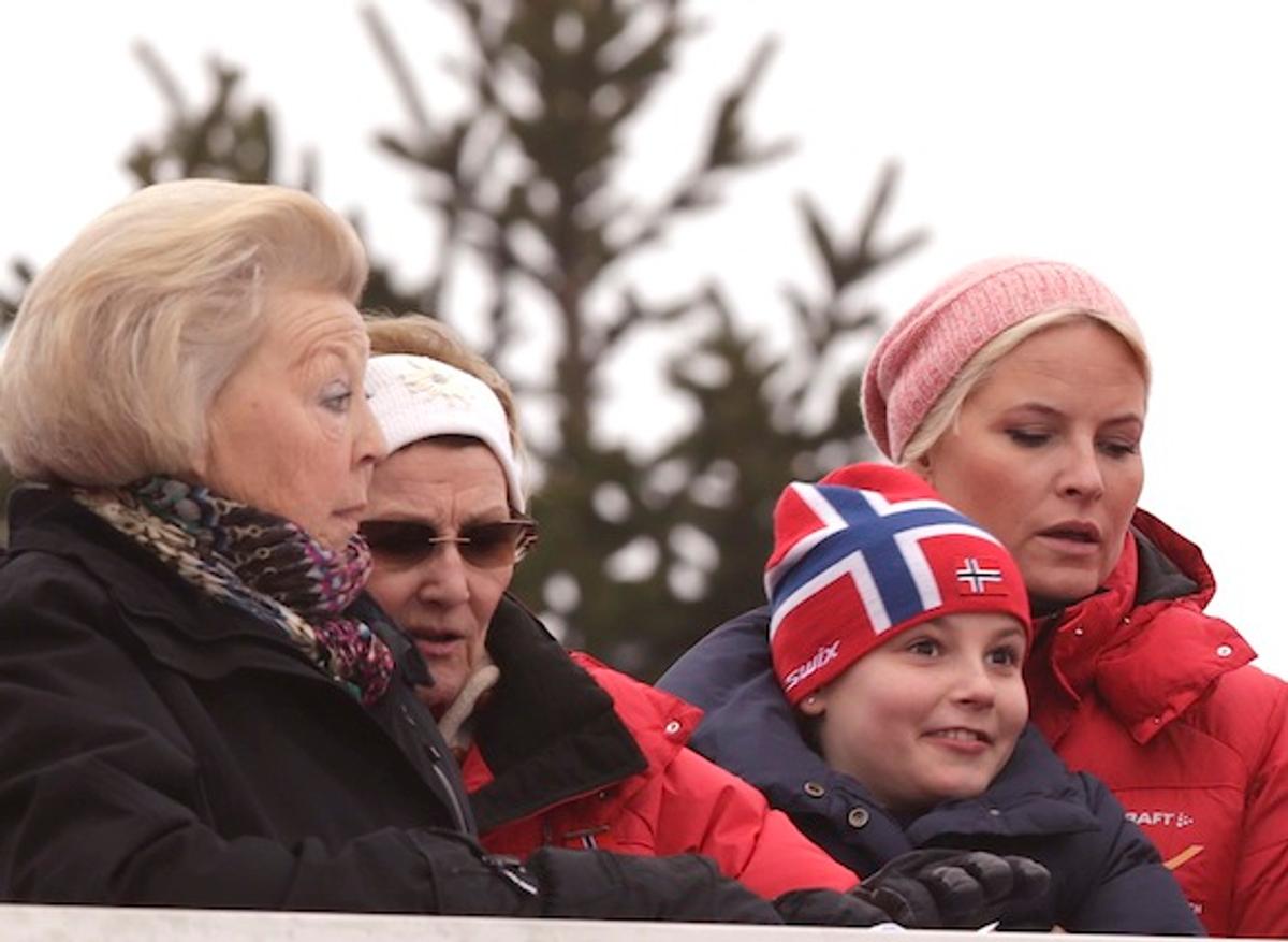Både Kongeparet, hele Kronprinsfamilien og Prinsesse Astrid, fru Ferner, var til stede i Holmenkollen i dag. H.K.H. Prinsesse Beatrix av Nederland var også i Kollen, som Kongefamiliens gjest på tribunen.