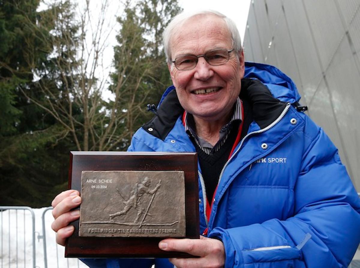 NRKs kommentator Arne Skeie mottok Birkebeinerplaketten på Kongetribunen under pausen i hopprennet. Dette er den høyeste utmerkelsen Skiforeningen deler ut til en som ikke selv er utøver. Dette er det siste Holmenkollrennet Skeie kommenterer i sin lange karriere i kommentatorboksen. Når årets sesong er omme, trer han inn i pensjonistenes rekker.