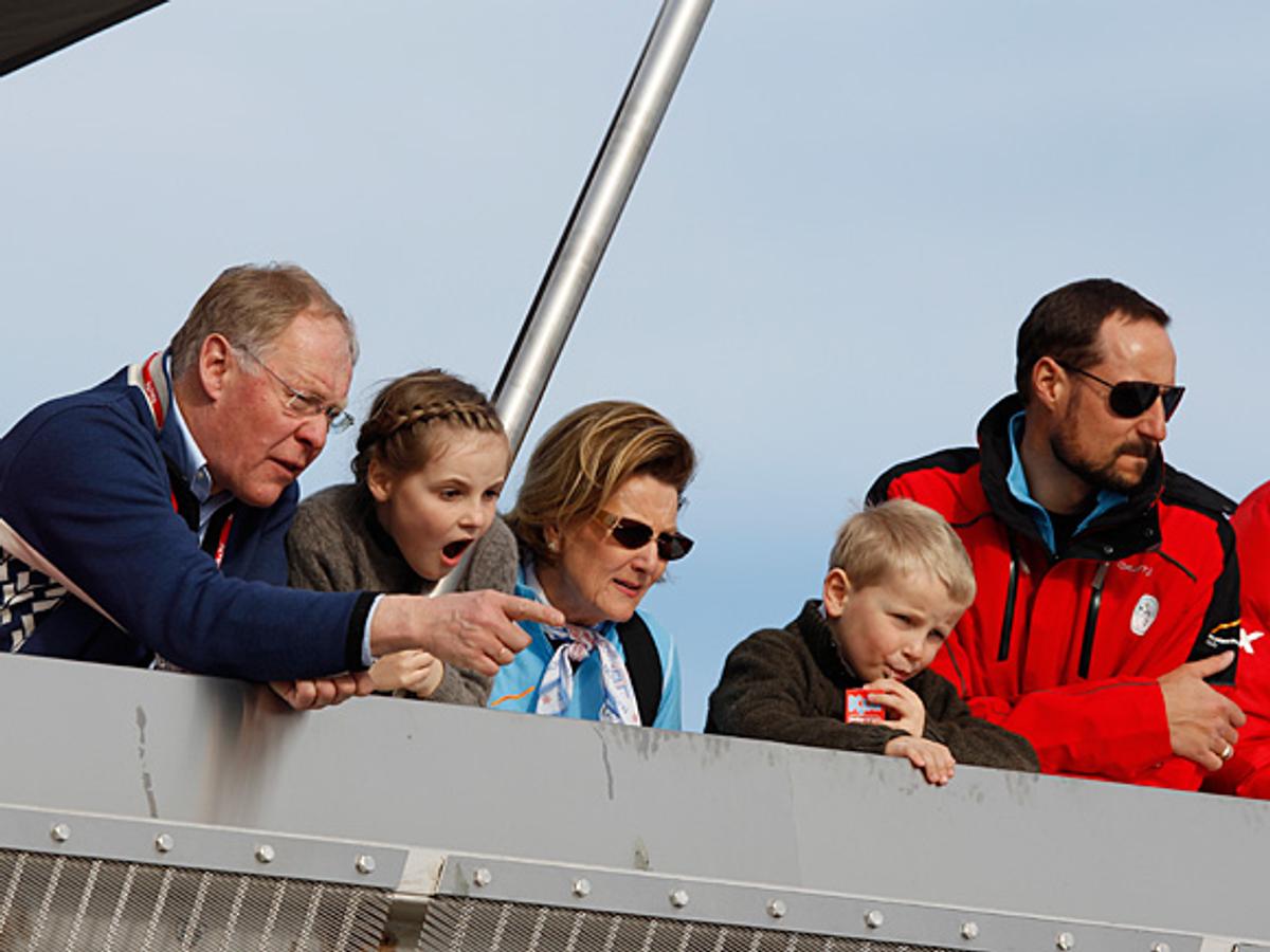 Både Deres Majesteter Kongen og Dronningen, Deres Kongelige Høyheter Kronprins Haakon og Kronprinsesse Mette-Marit, Hennes Kongelige Høyhet Prinsesse Ingrid Alexandra, Prins Sverre Magnus og Prinsesse Astrid var til stede under hopprennet.