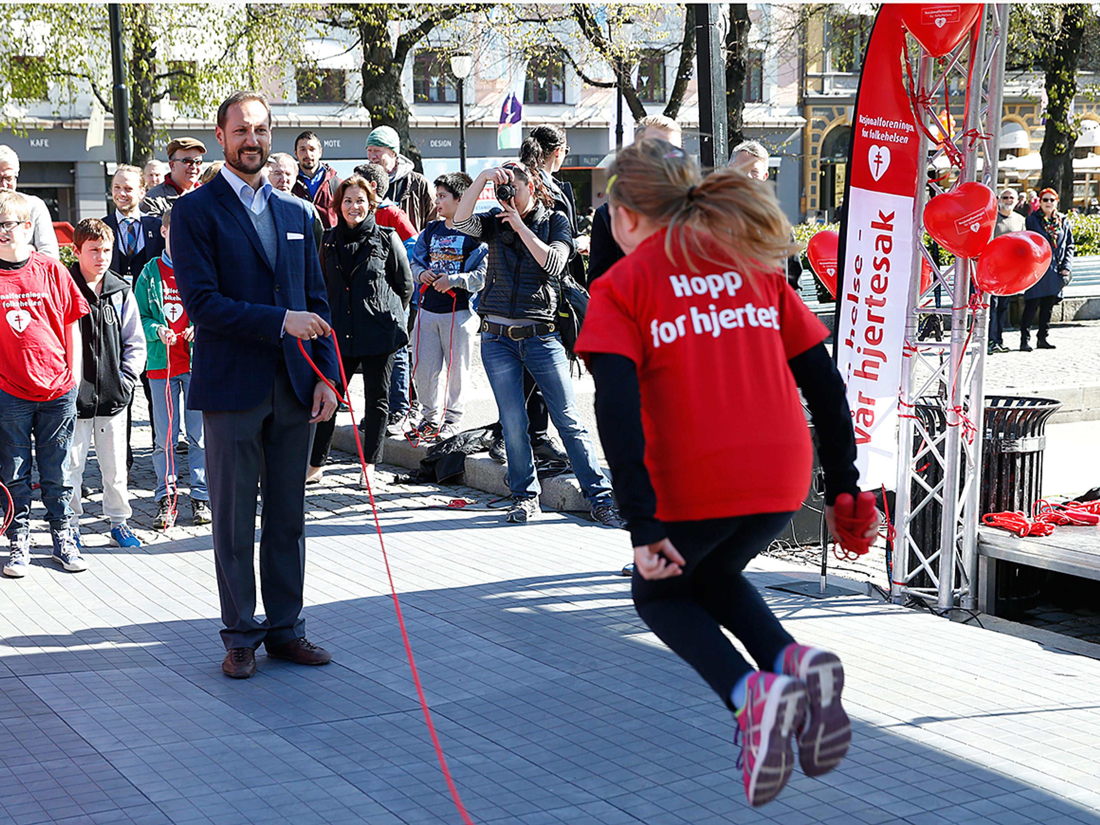 Hans Kongelige Høyhet Kronprins Haakon åpnet Nasjonalforeningens hoppetaukonkurranse i dag. Over halvparten av landets barneskoler deltar.