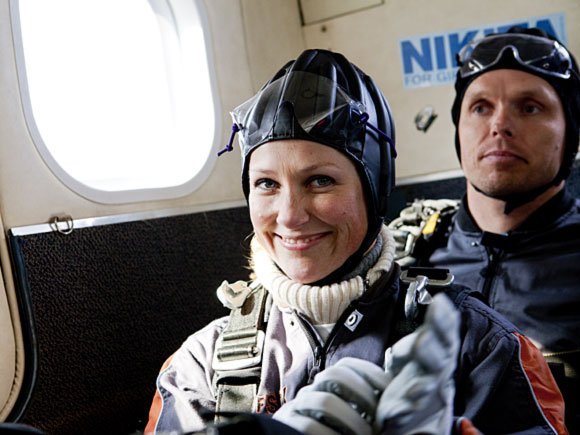 Sammen med Cato Zahl Pedersen, Steinar Andreassen Jensen og Per Christian Brunsvik hoppet Prinsessen ut fra ca 3800 meters høyde, alle fire med hver sin tandeminstruktør.