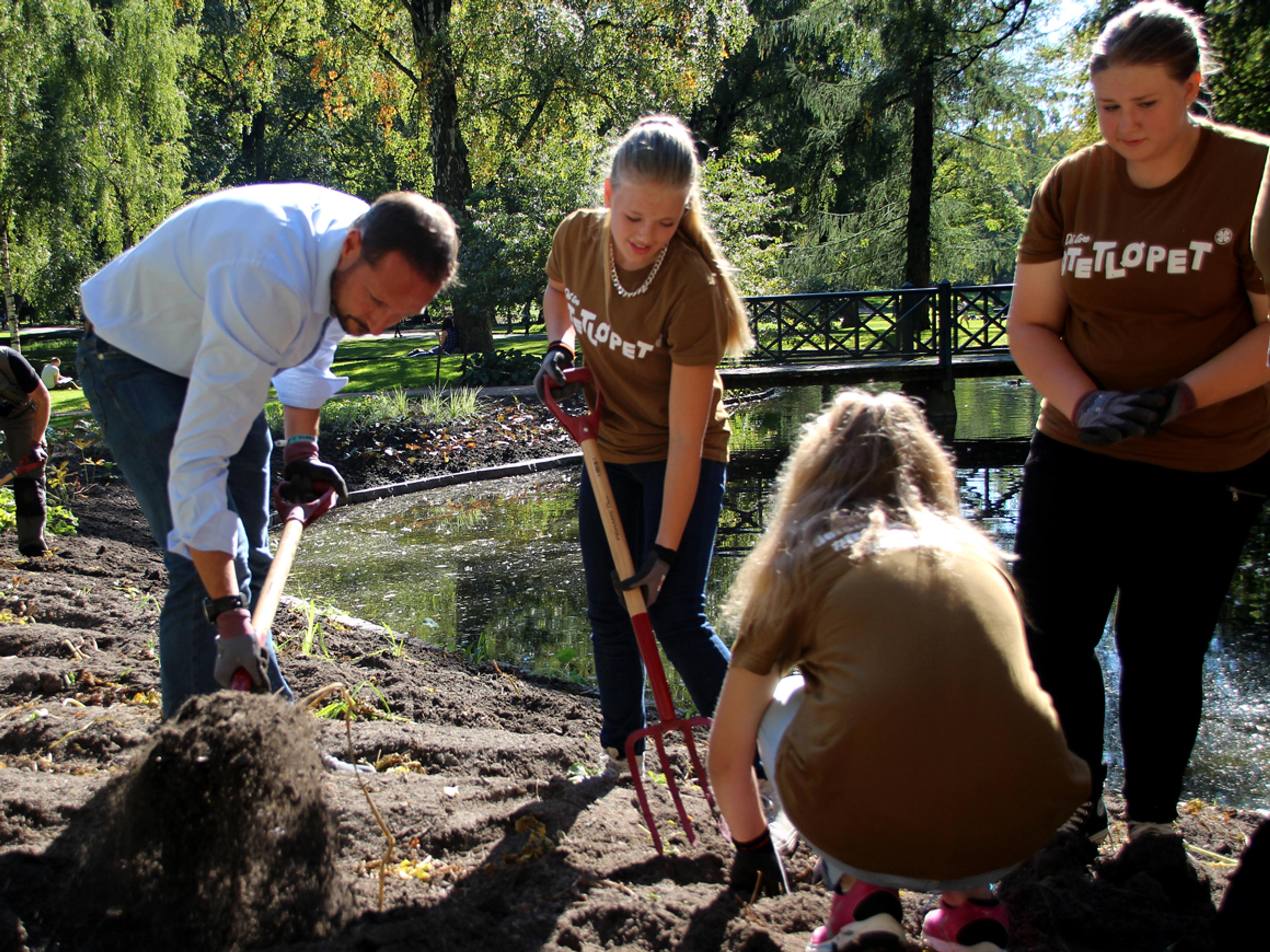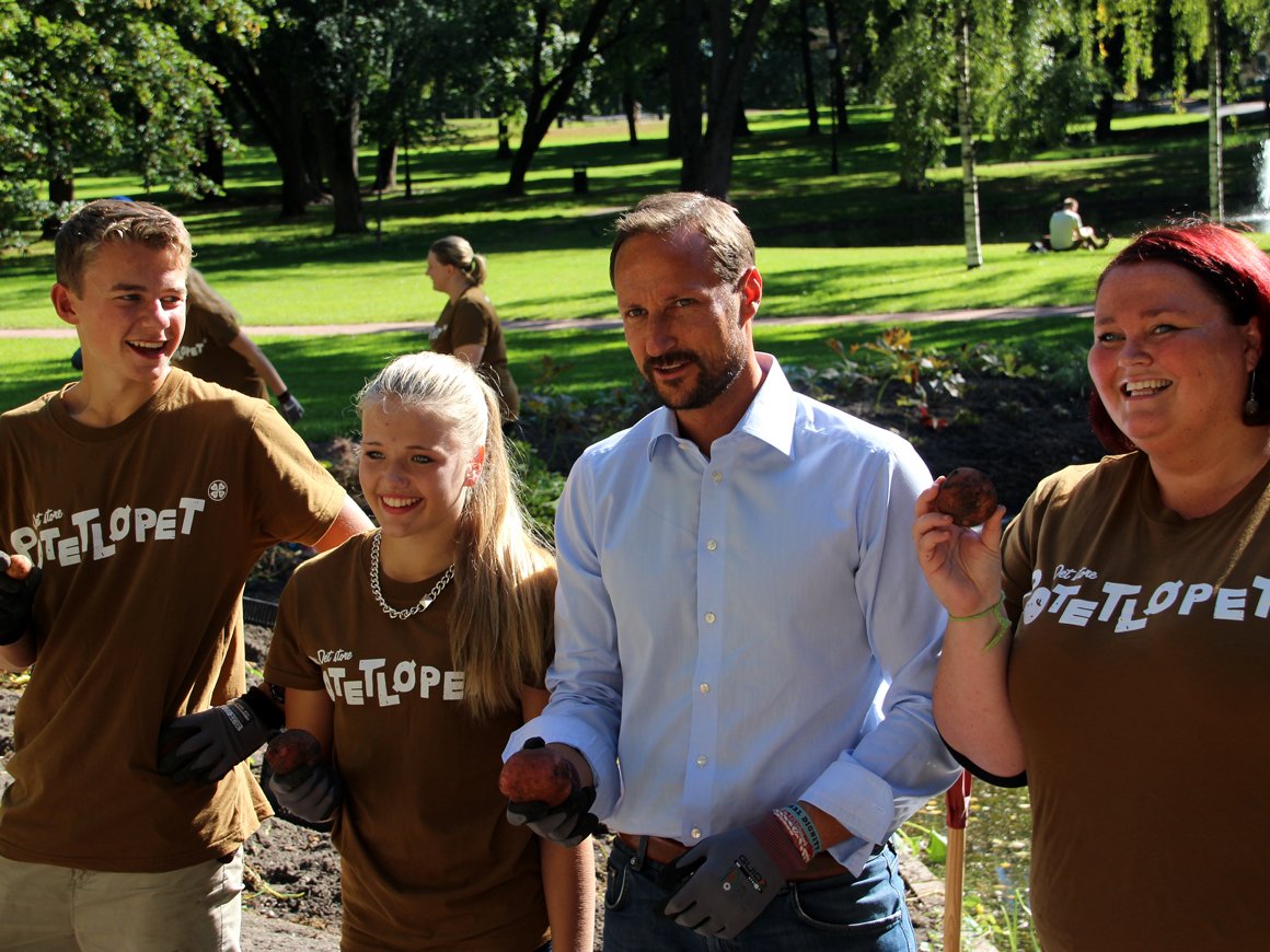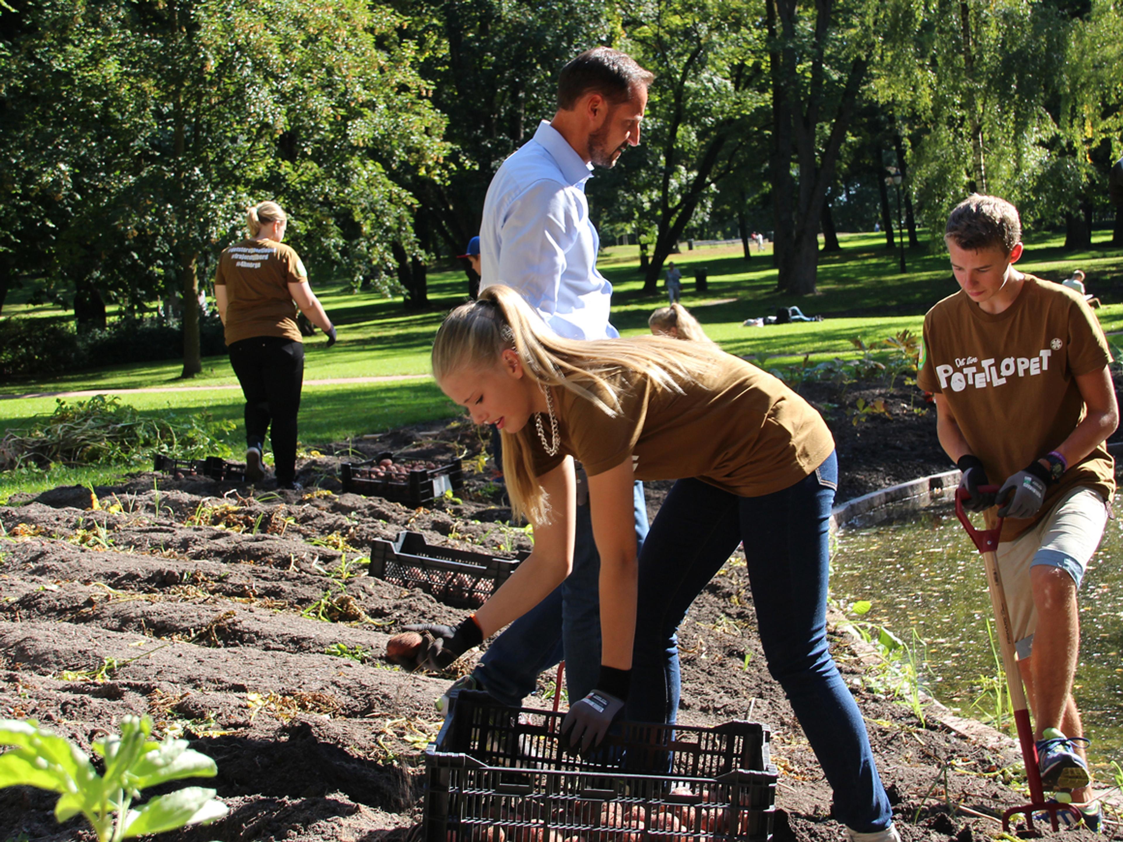 I dag var unge fra 4H invitert til Slottsparken for å hjelpe til med potethøsten. De fikk seg en overraskelse da Hans Kongelige Høyhet Kronprins Haakon kom for å hjelpe til.