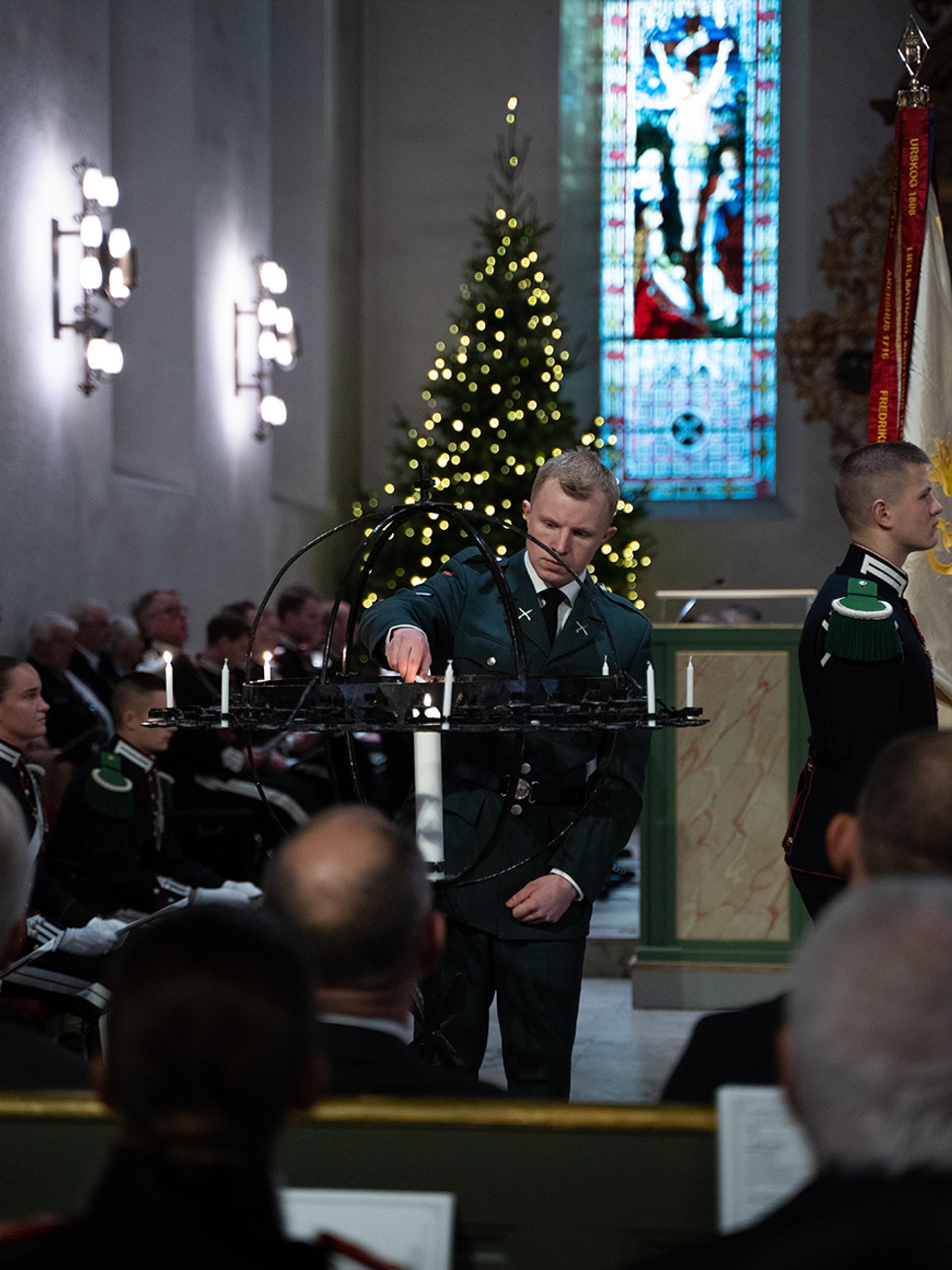 Domprost Anne-May Grasaas ønsket alle velkommen til høytideligheten, da rittmester Henrik Lund hadde lest minneord over de som har falt i Gardens tjeneste. Dagens tekst var hentet fra Mika 5. kapittel. Etter tekstlesningen spilte Gardens musikkorps Nordnorsk julesalme med gardist Ingrid Solheim Grove som solist.