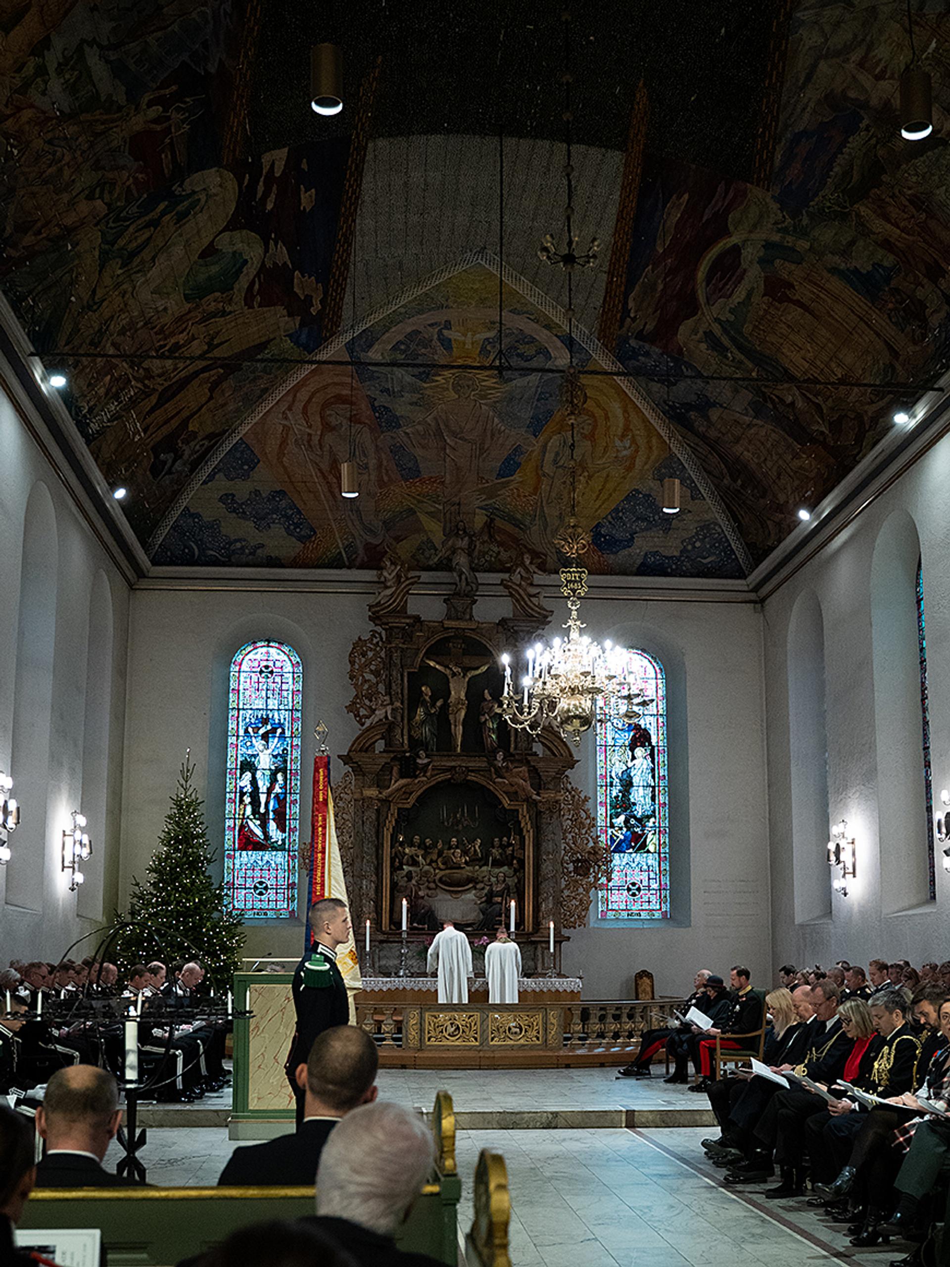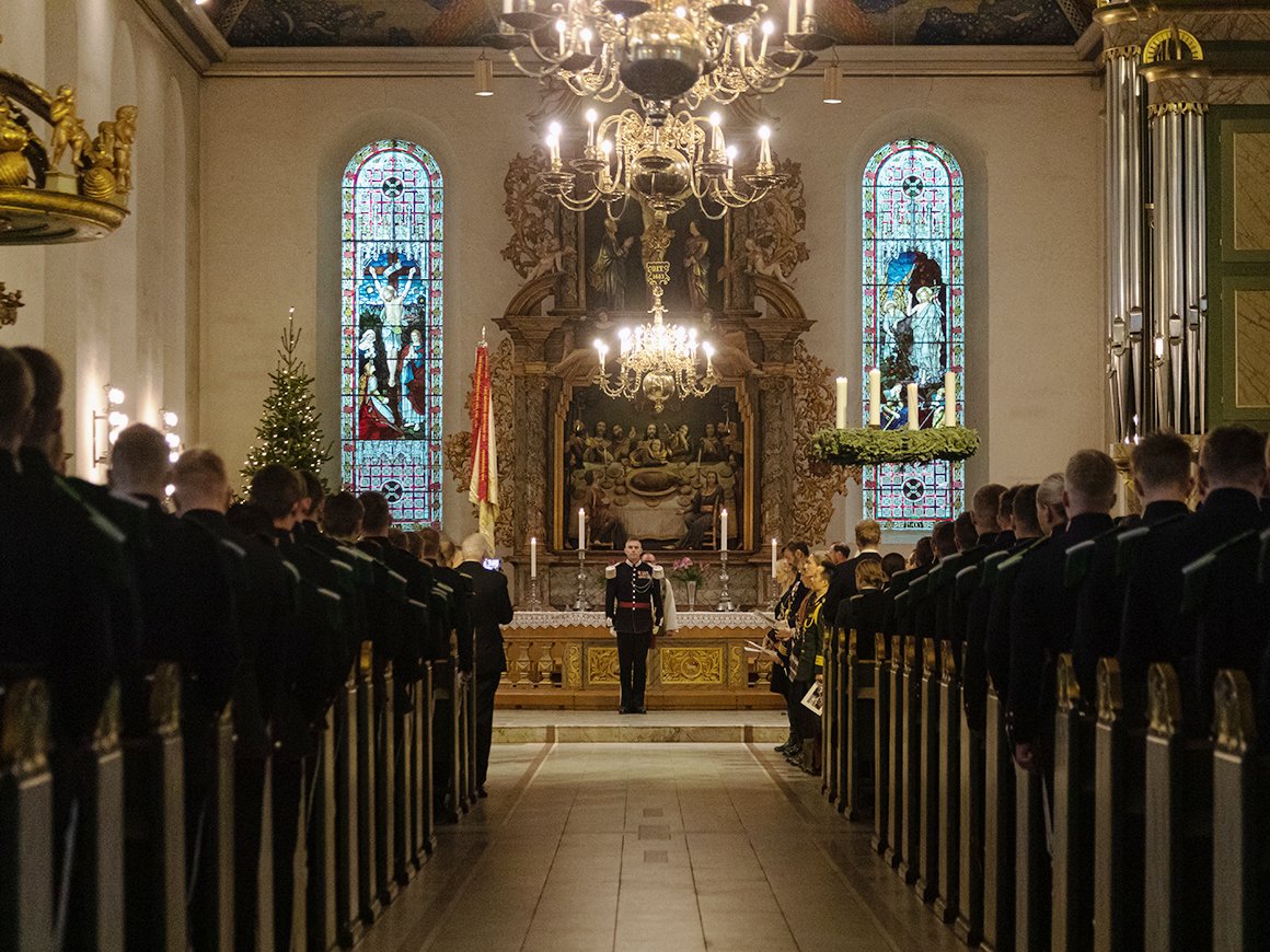 Gardeprest major Kenneth Henriksen holdt preken med utgangspunkt i Johannesevangeliets 1. kapittel, mens Gardens musikkorps skapte en stemningsfull ramme om det hele med verk som Glade jul og Cantique de Noel. Ved orgelet satt domkantor Kaare Nordstoga.
