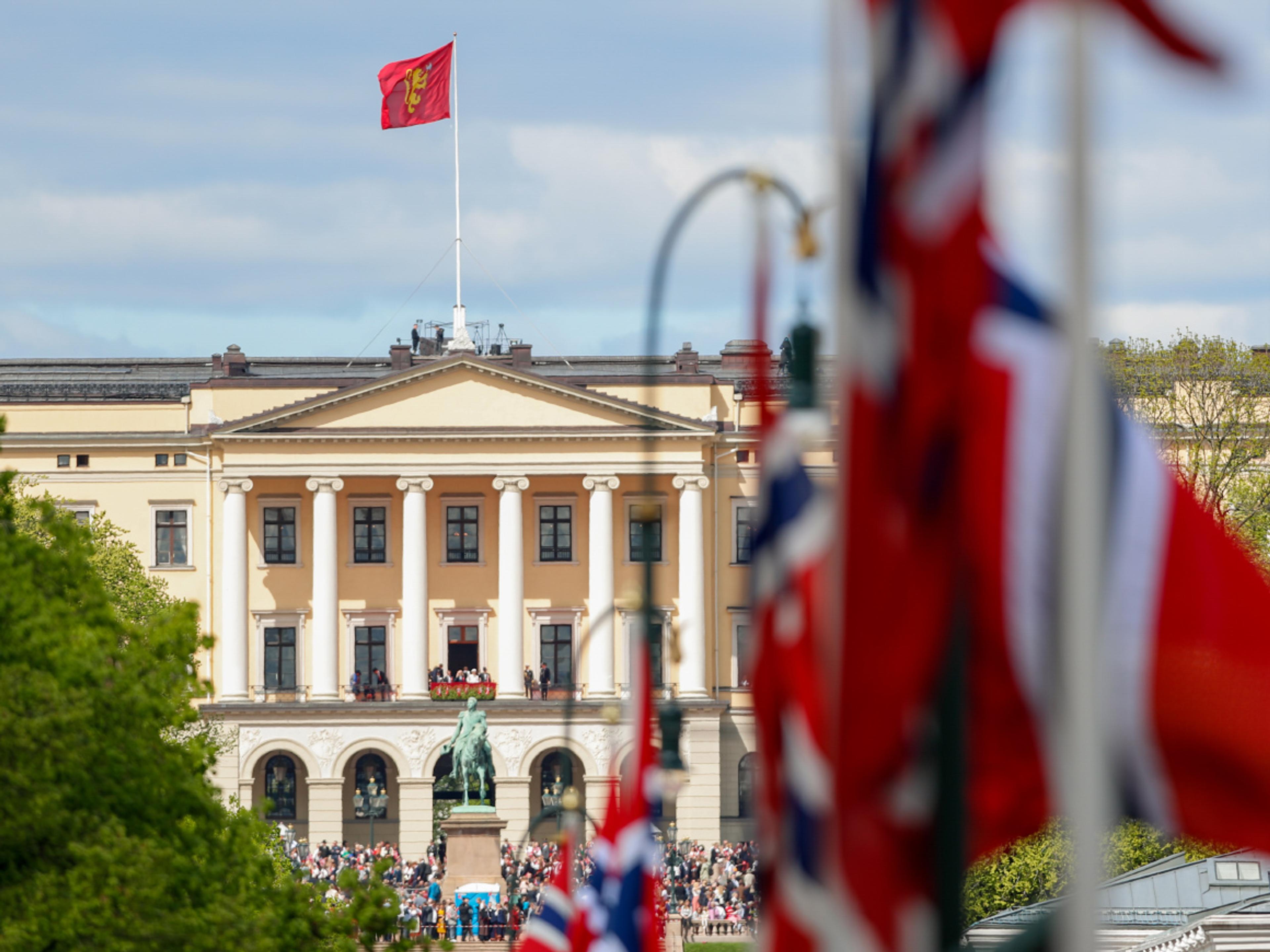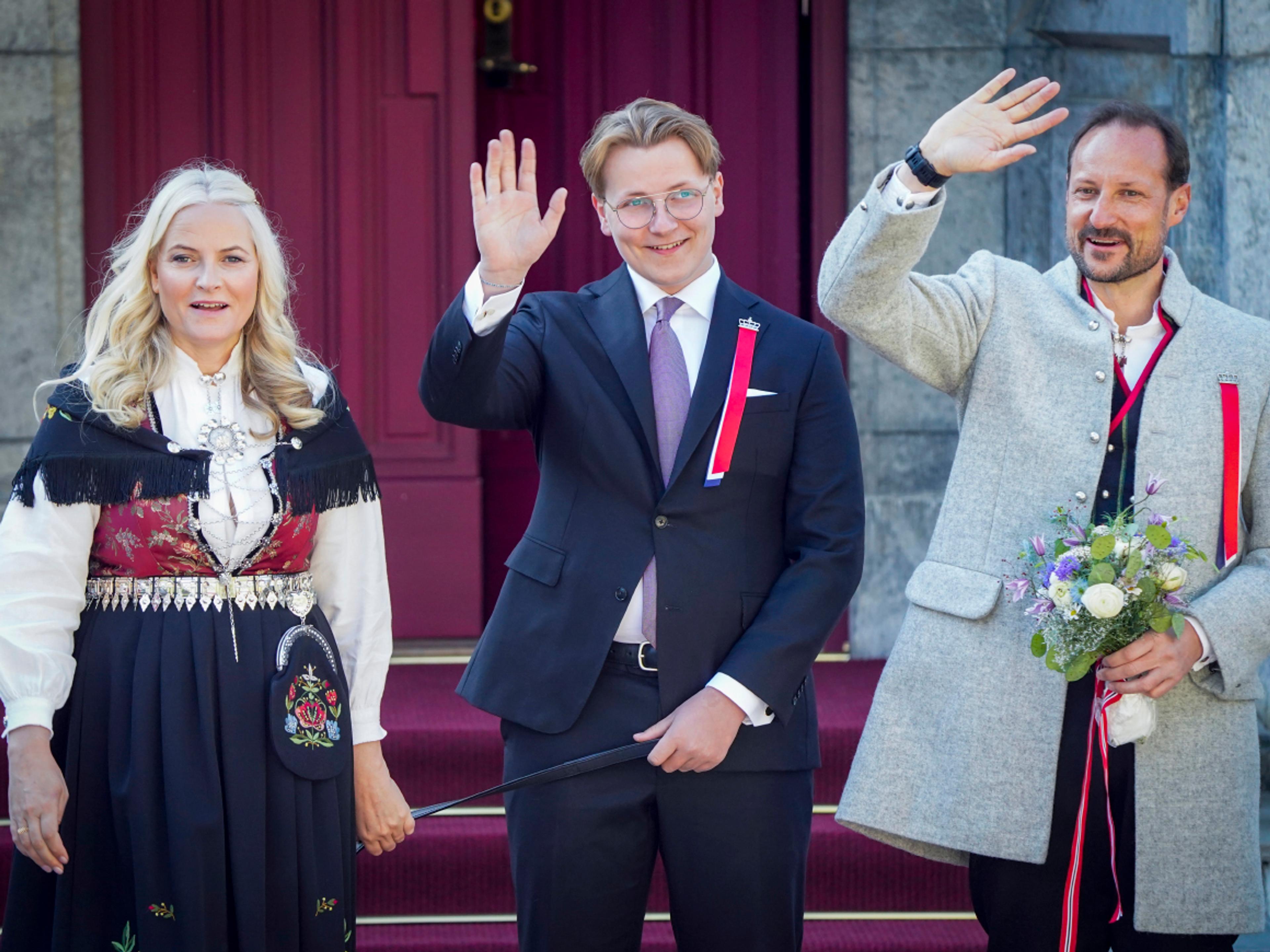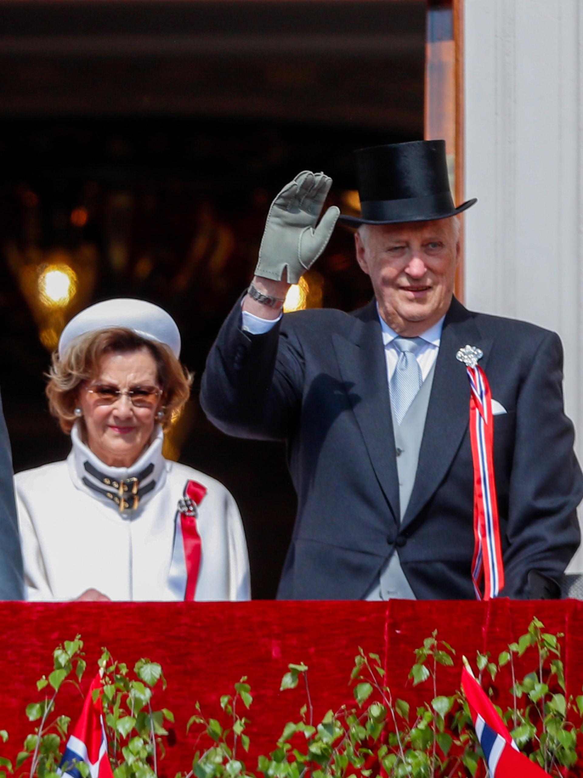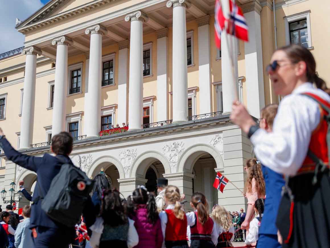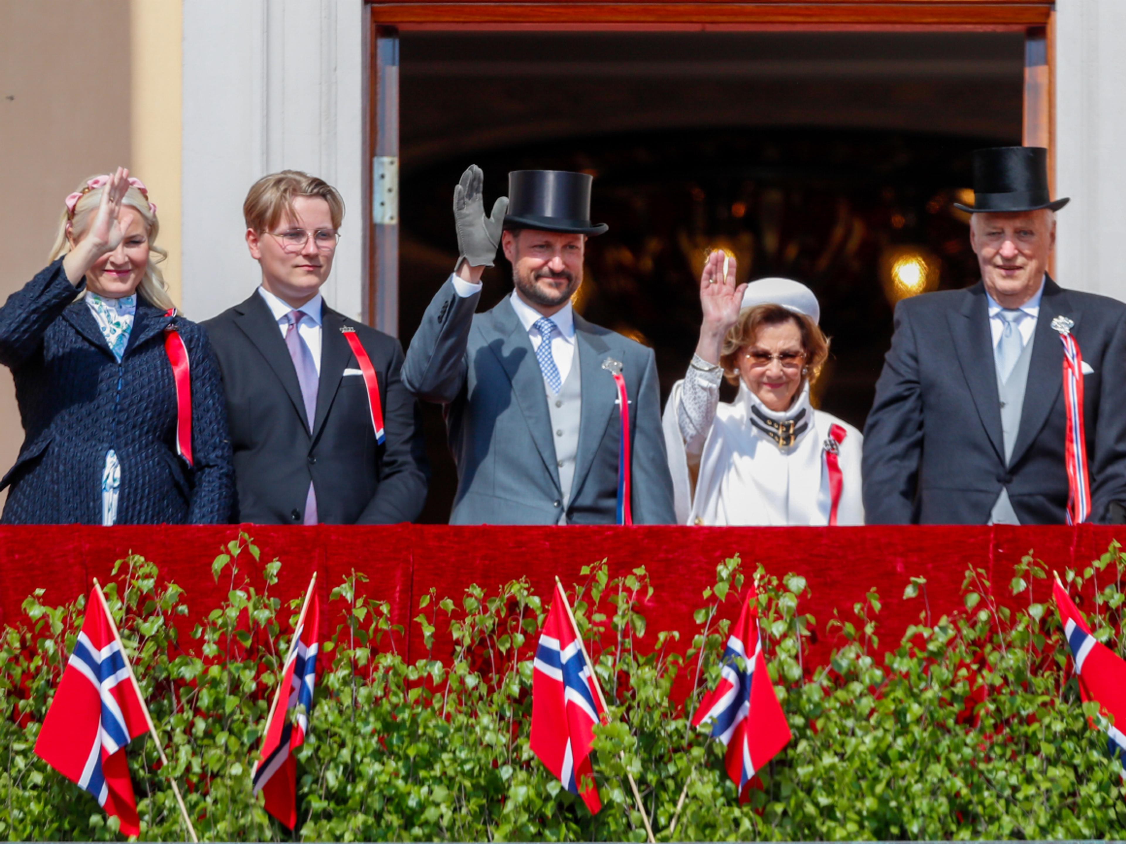 Nøyaktig klokken 10.30 kom Kongefamilien ut på Slottsbalkongen for å hilse barnetoget i Oslo. Det var riktignok én som manglet: Hennes Kongelige Høyhet Prinsesse Ingrid Alexandra er russ i år og feirer med kullet sitt.