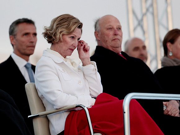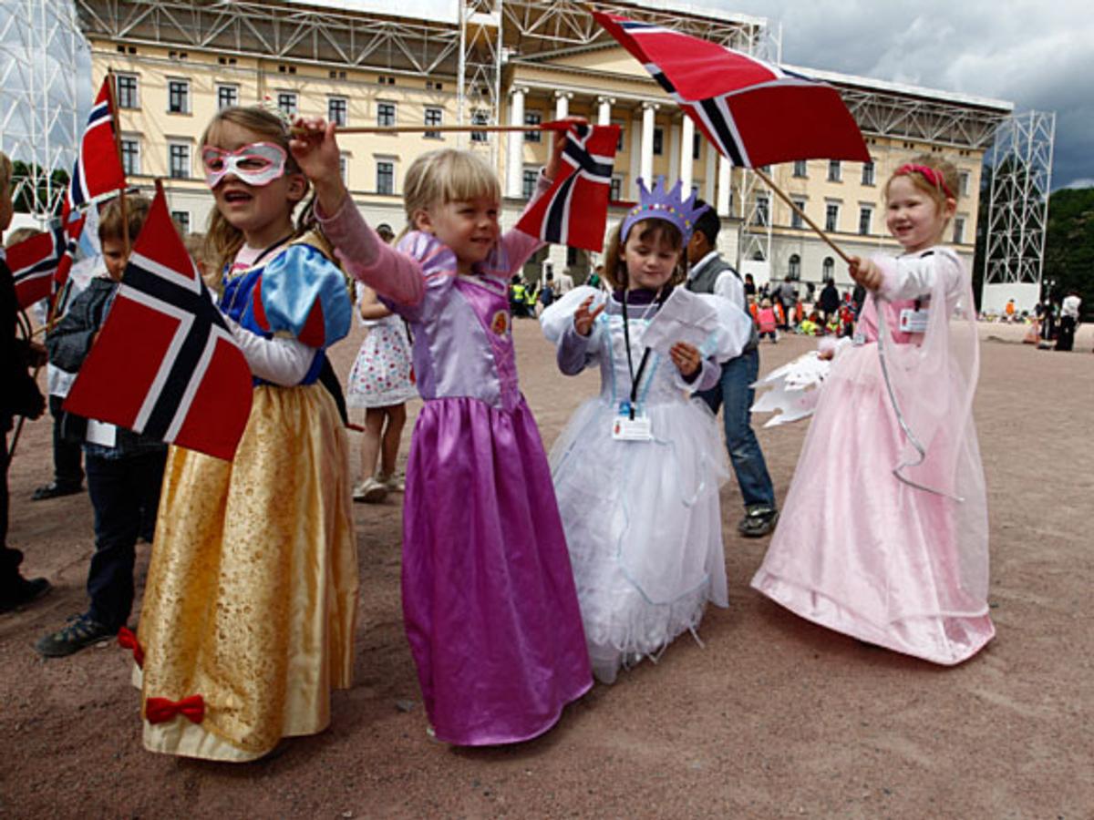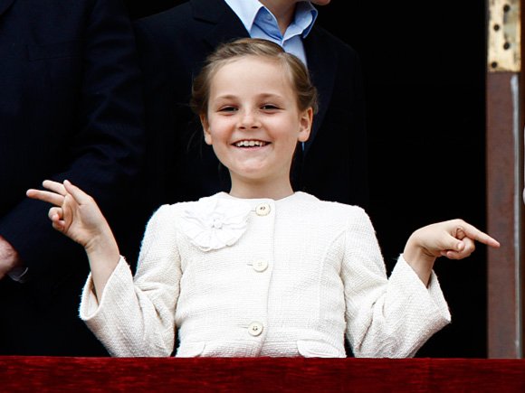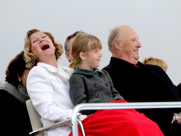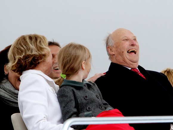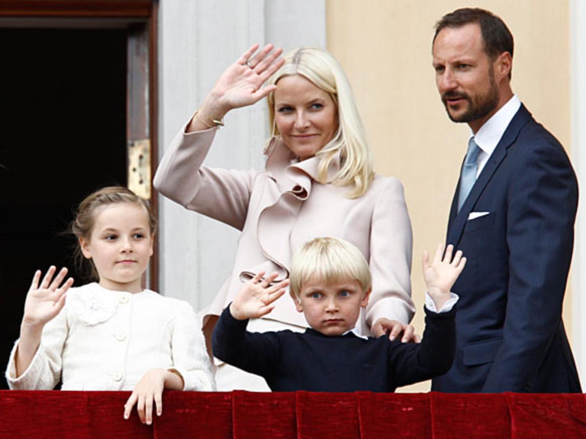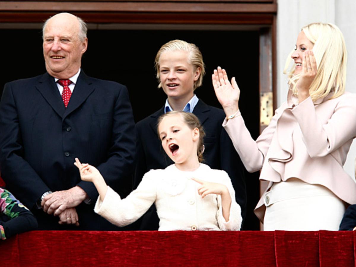 På Slottsbalkongen sto både Kongeparet, Kronprinsparet med familie og Prinsesse Märtha Louise og Ari Behn med sine døtre, Prinsesse Astrid, fru Ferner og Johan Martin Ferner.