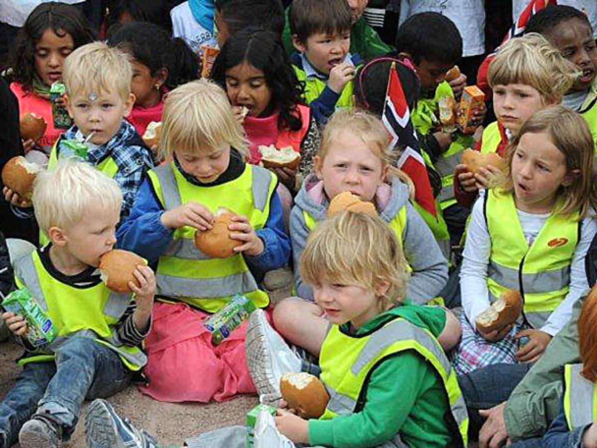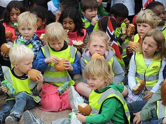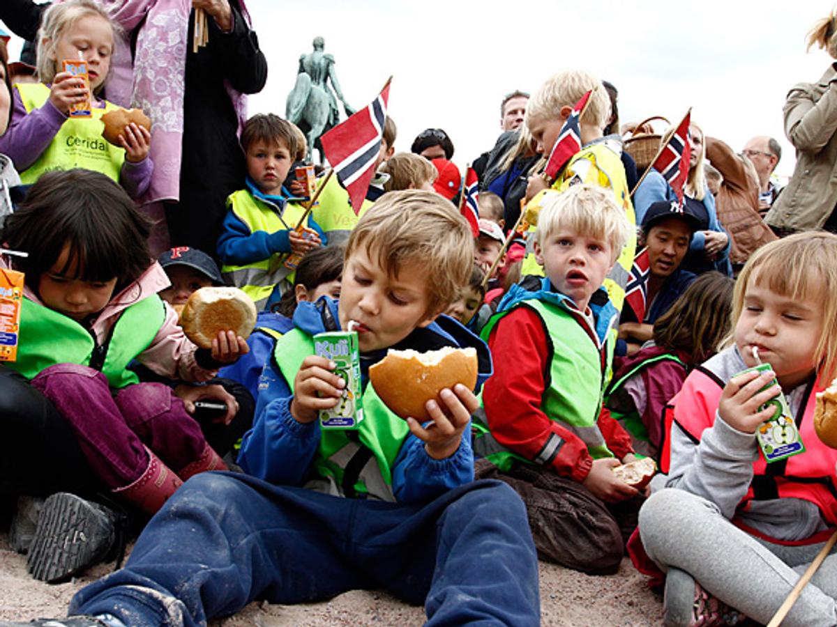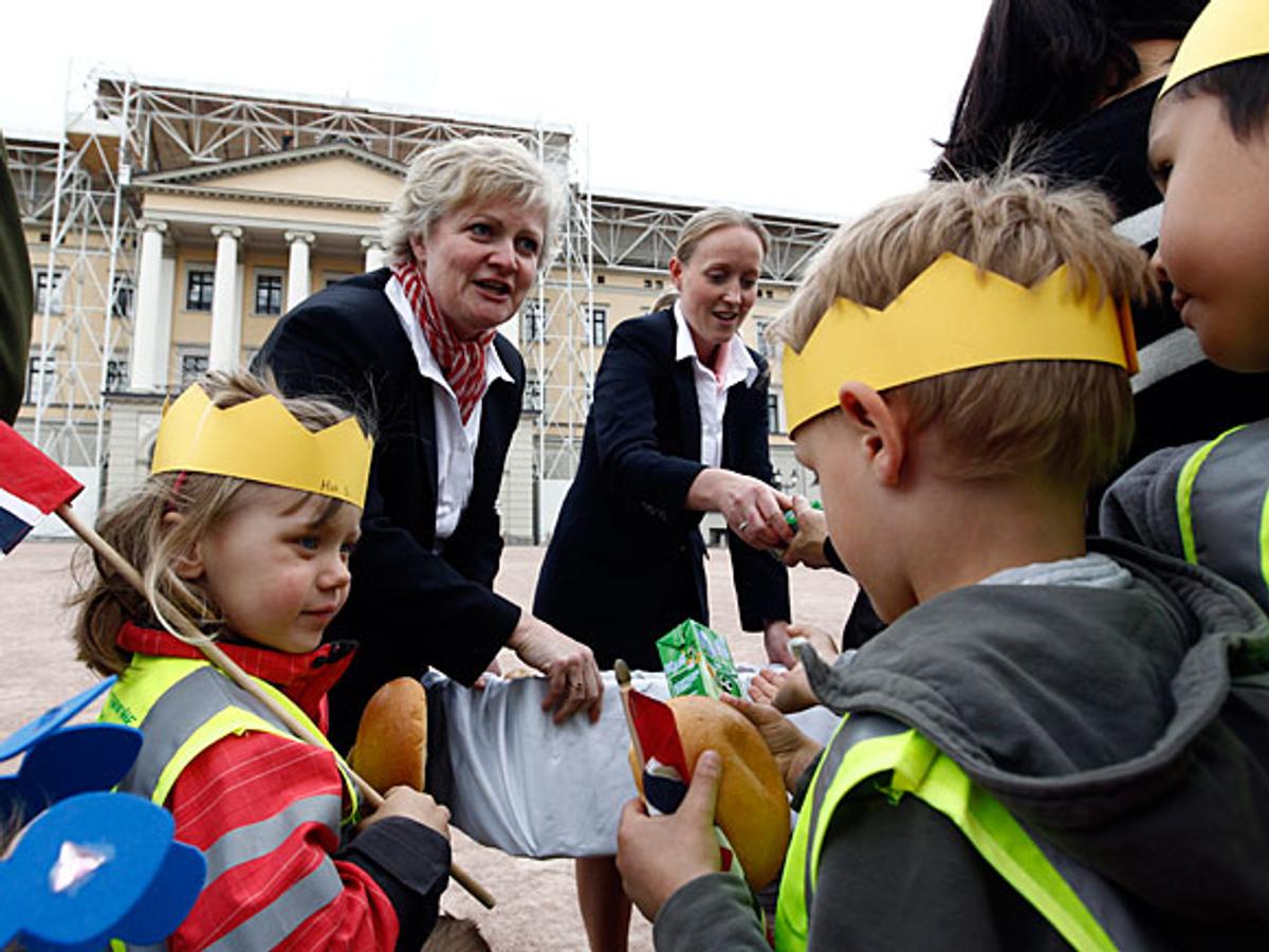 Oslo kommune spanderte bursdagsboller og saft på alle barna, og det var hoffets ansatte som hadde gleden av å dele dem ut. Mange kurver ble tømt og måtte etterfylles inne på Slottet før alle barna hadde fått.