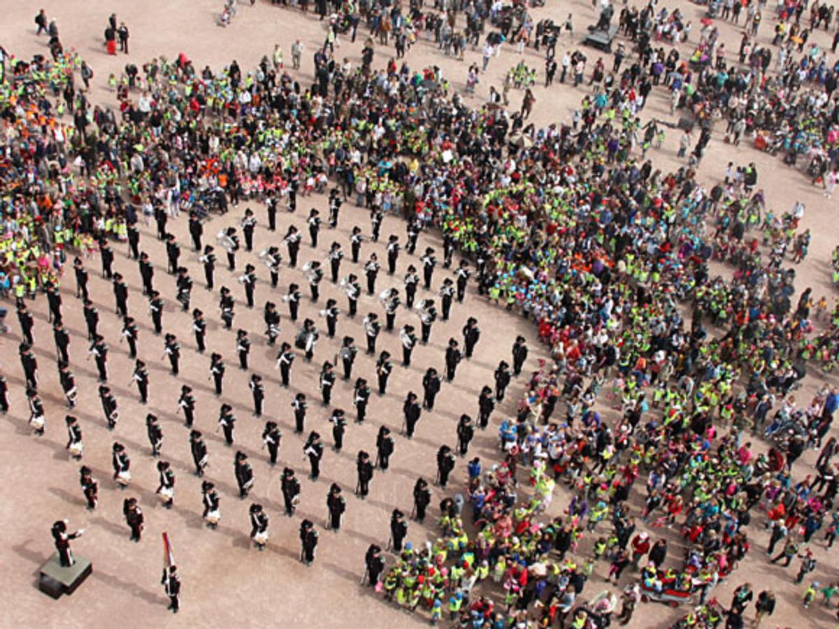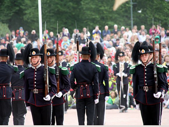 Hans Majestet Kongens Gardes drilltropp holdt oppvisning på Slottsplassen til ære for jubilantene. De imponerte mange, og på spørsmål fra Oslos ordfører Fabian Stang, ble det klart at mange av barna nok kunne tenke seg å bli gardister etter hvert.
