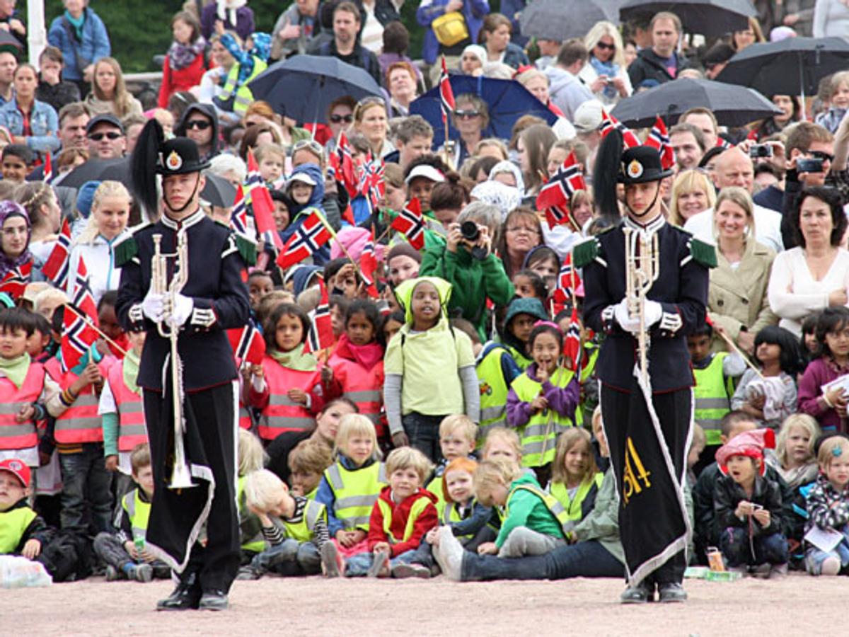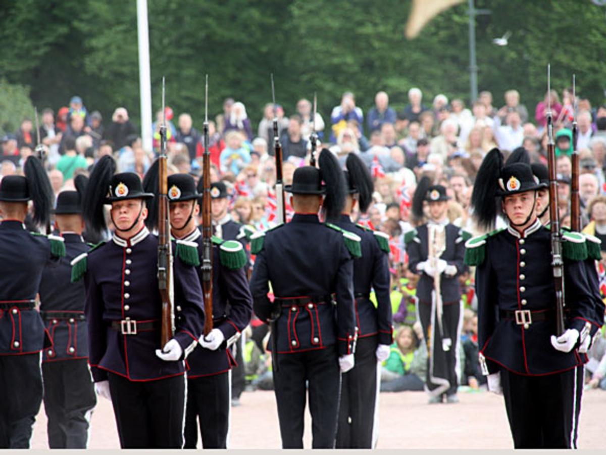 Både Kongen og Dronningen fyller 75 år i år, og i dag ble begge feiret med drilloppvisning og bursdagssang på Slottsplassen. På 17. mai er det skolebarna som kommer på Slottsplassen. I dag var det barnehagebarna sin tur. De fikk boller og saft og så Gardens drilltropp opptre, før de selv ga Kongeparet en rungende bursdagssang.