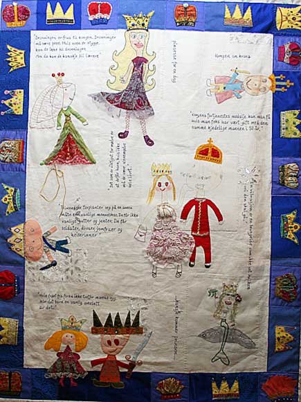 Dronning Sonja har bidratt til prosjektet med stoff frå systua ved Slottet. Dette har vorte til eit eige "dronningteppe", som er laga med utgangspunkt i barns teikningar av prinsar og prinsesser. Dronningteppet blir stilt ut saman med andre teppe frå Barn gleder Barn-prosjektet i Spikersuppa i Oslo sentrum i dag, 12. juni.