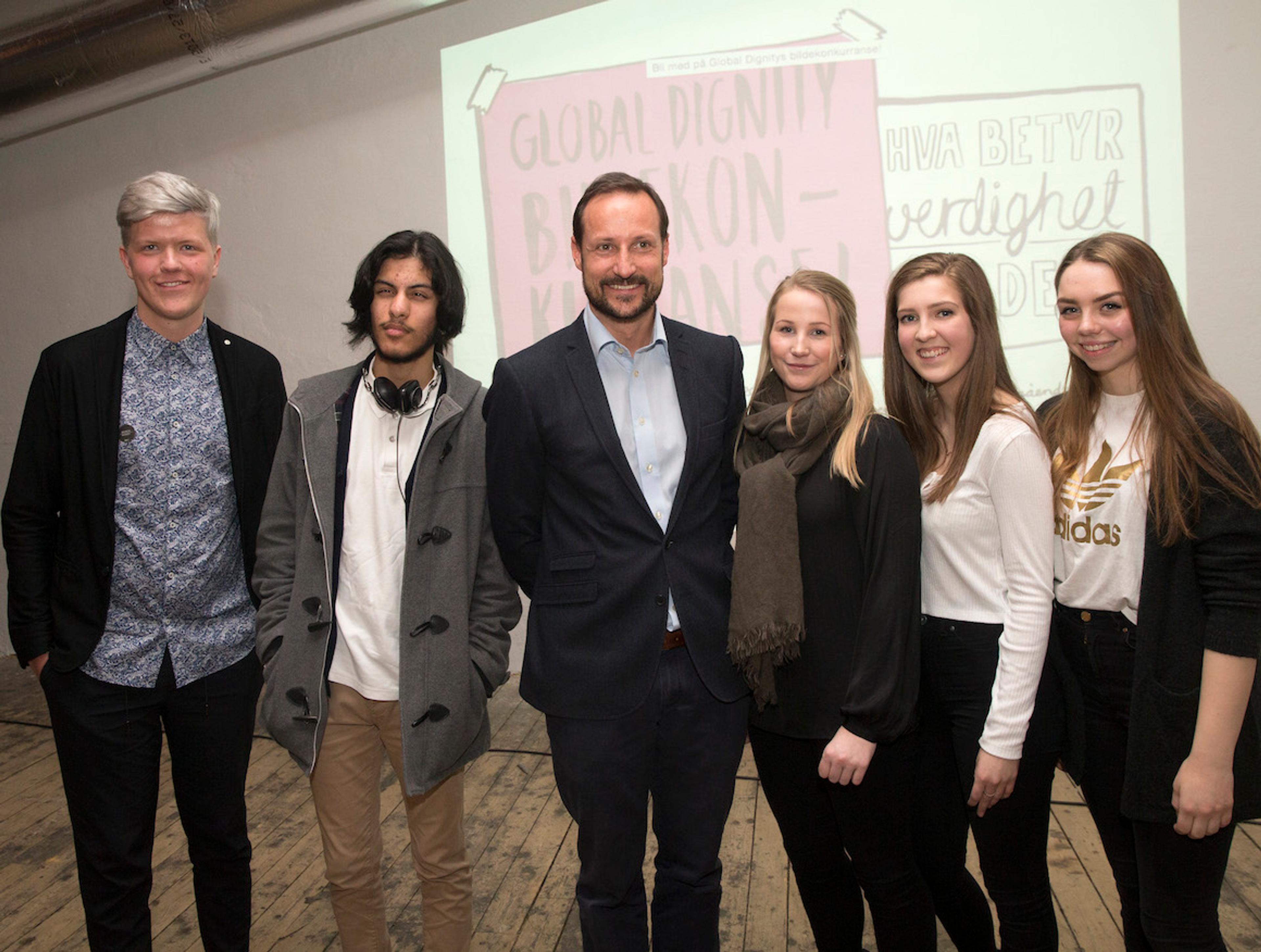 Global Dignity inviterte invitert ungdom over hele landet til å visualisere hva verdighet betyr for dem i deres hverdag. I dag åpnet H.K.H. Kronprinsen visningen av vinnerbidragene i Oslo.