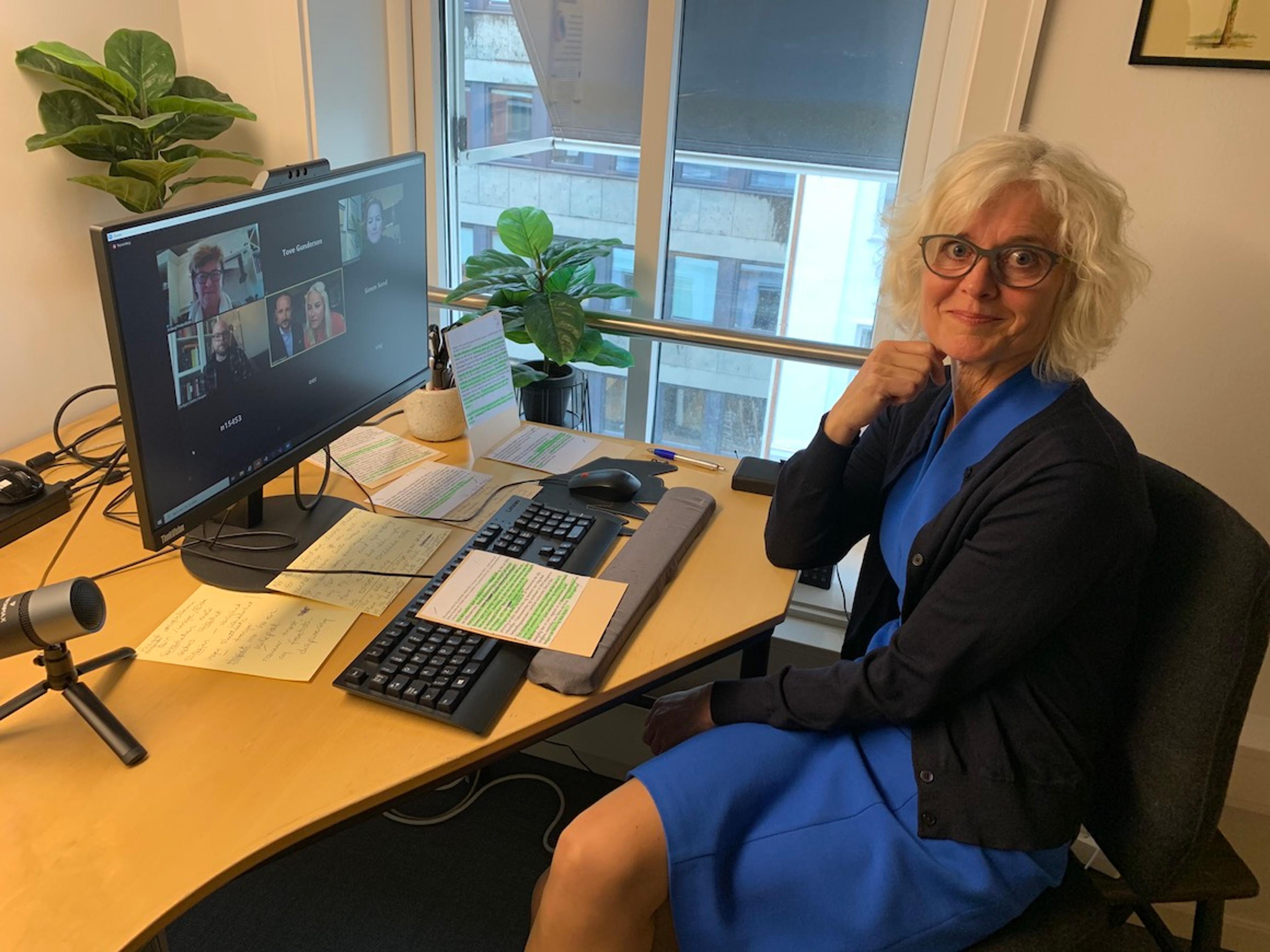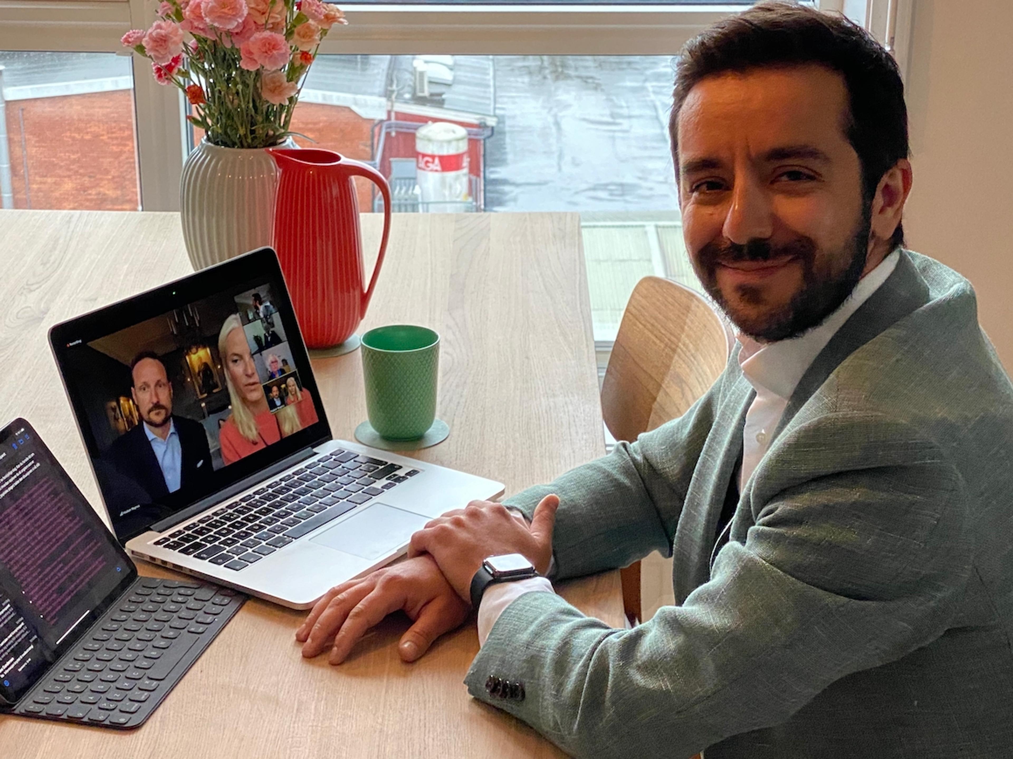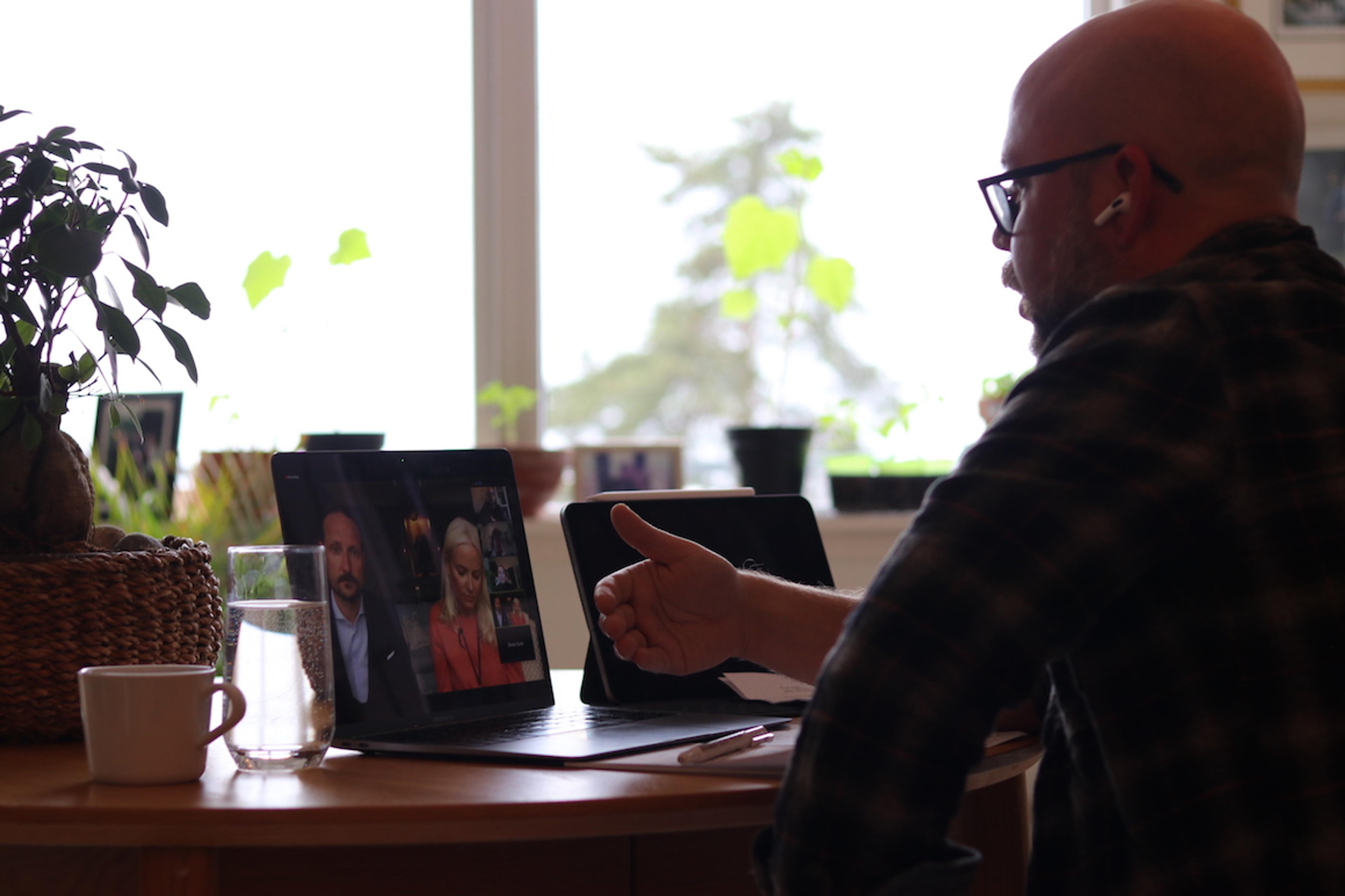 Ingen får være alene på vakt – selv om det er på hjemmekontor, forteller Bergset når Kronprinsessen spør hvordan de ansatte blir ivaretatt oppe i alt dette. - Alle inngår i elektroniske fellesskap der de kan få veiledning og har kontakt med andre.