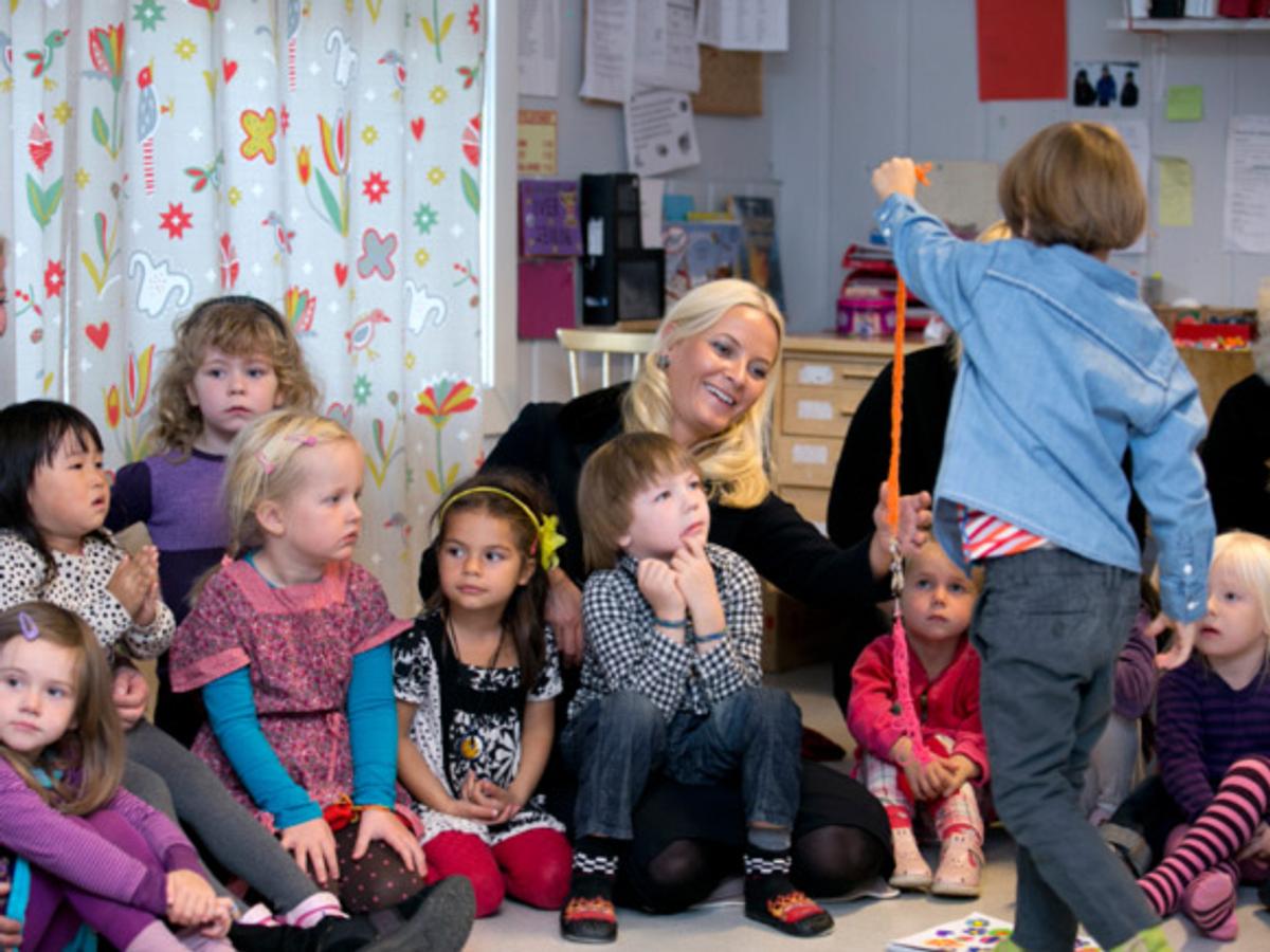 «Honning», «rosa» og «lilla» ting, «leke med venner» var noe av det som barna svarte da Kronprinsessen spurte om hva som gjorde dem glad.