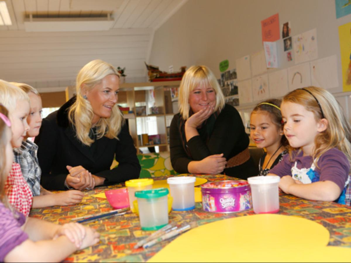 H.K.H. Kronprinsesse Mette-Marit besøkte i dag Keyserløkka barnehage sammen med Rådet for psykisk helse. Der snakket de blant annet om ting som gjør dem glad.