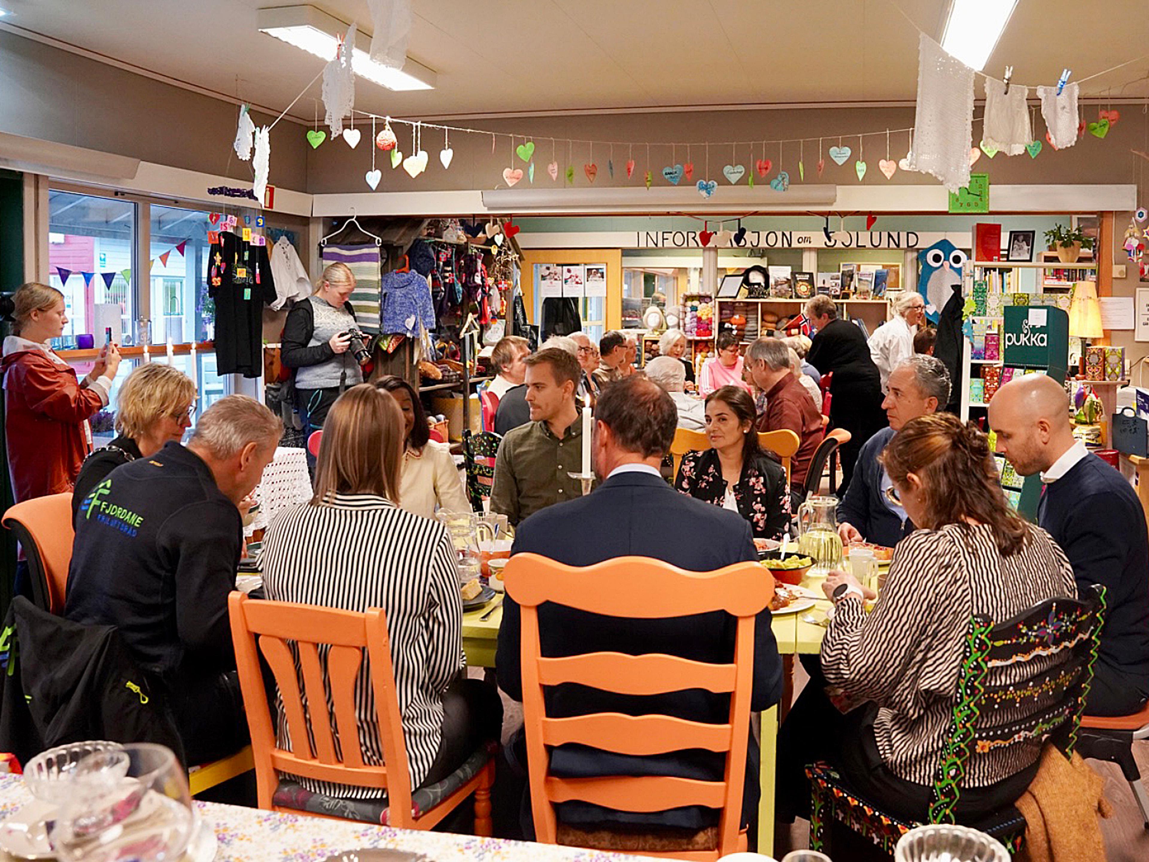Dette fekk Kronprinsen høyre meir om da han besøkte kafeen for lunsj og samtalar med nokon av dei faste gjestene. Han fekk også møte representantar for eldrerådet, frivilligheita, lokalt næringsliv og ulike nasjonalitetar som har slått seg ned her.