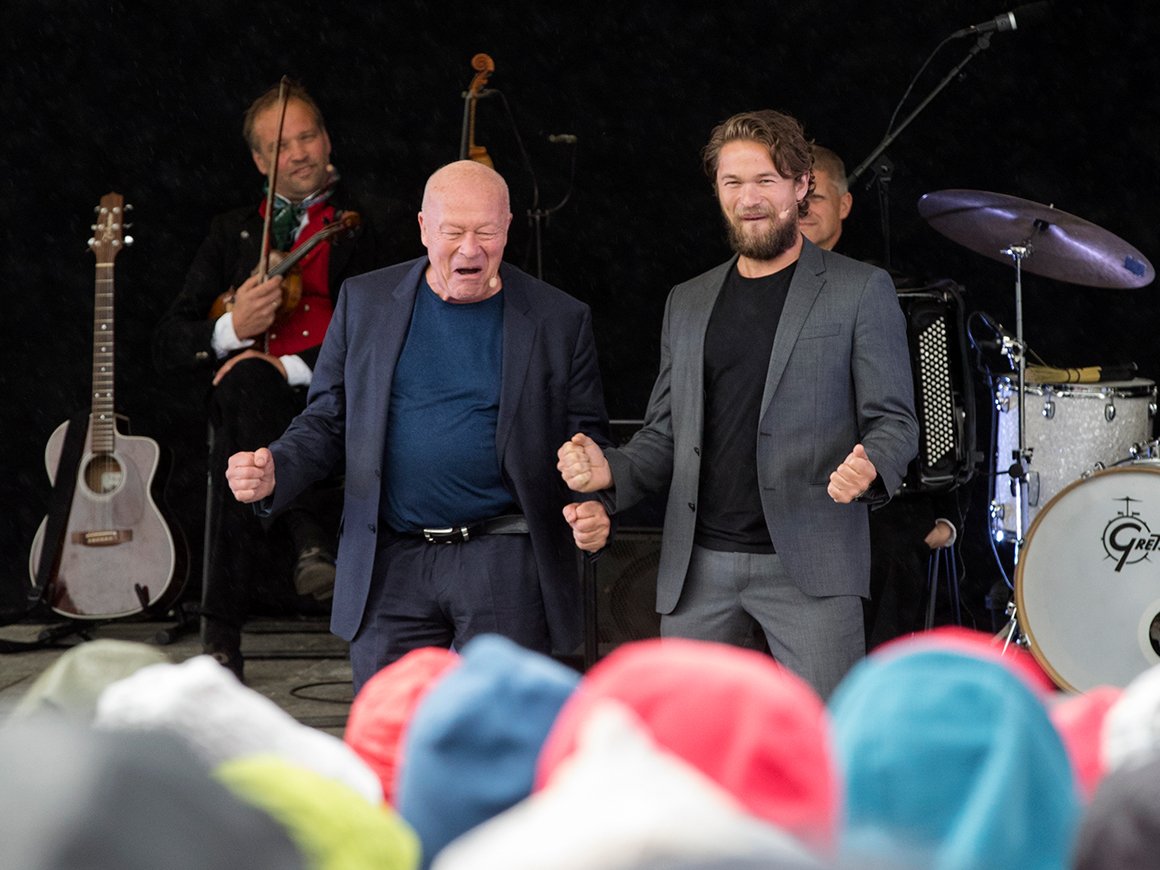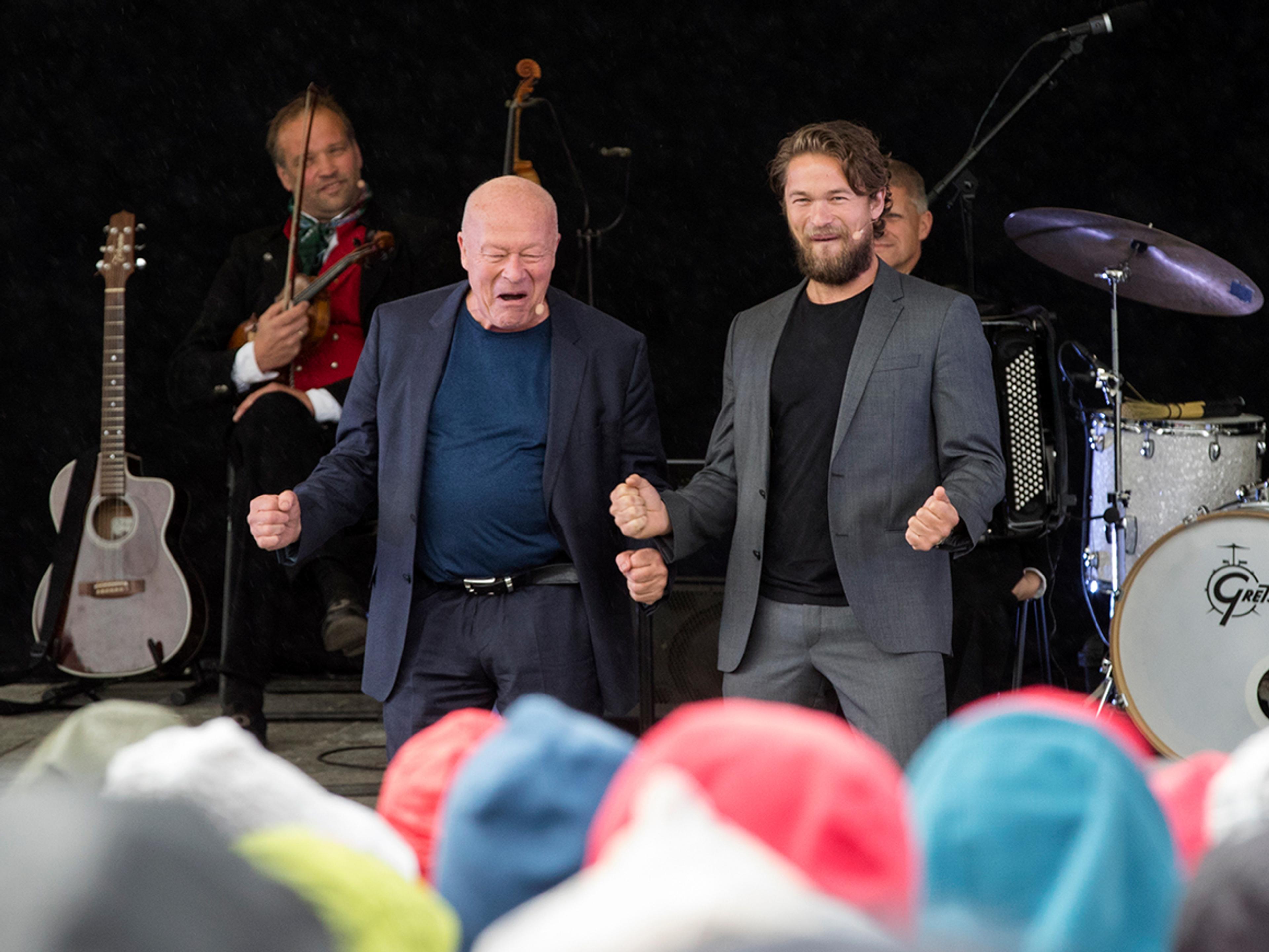 De to blad Oftebro har rollen som Peer Gynt i årets oppsetting av skuespillet på Gålå. I kveld framførte de "løkmonologen" sammen for Kongen og Dronningen.