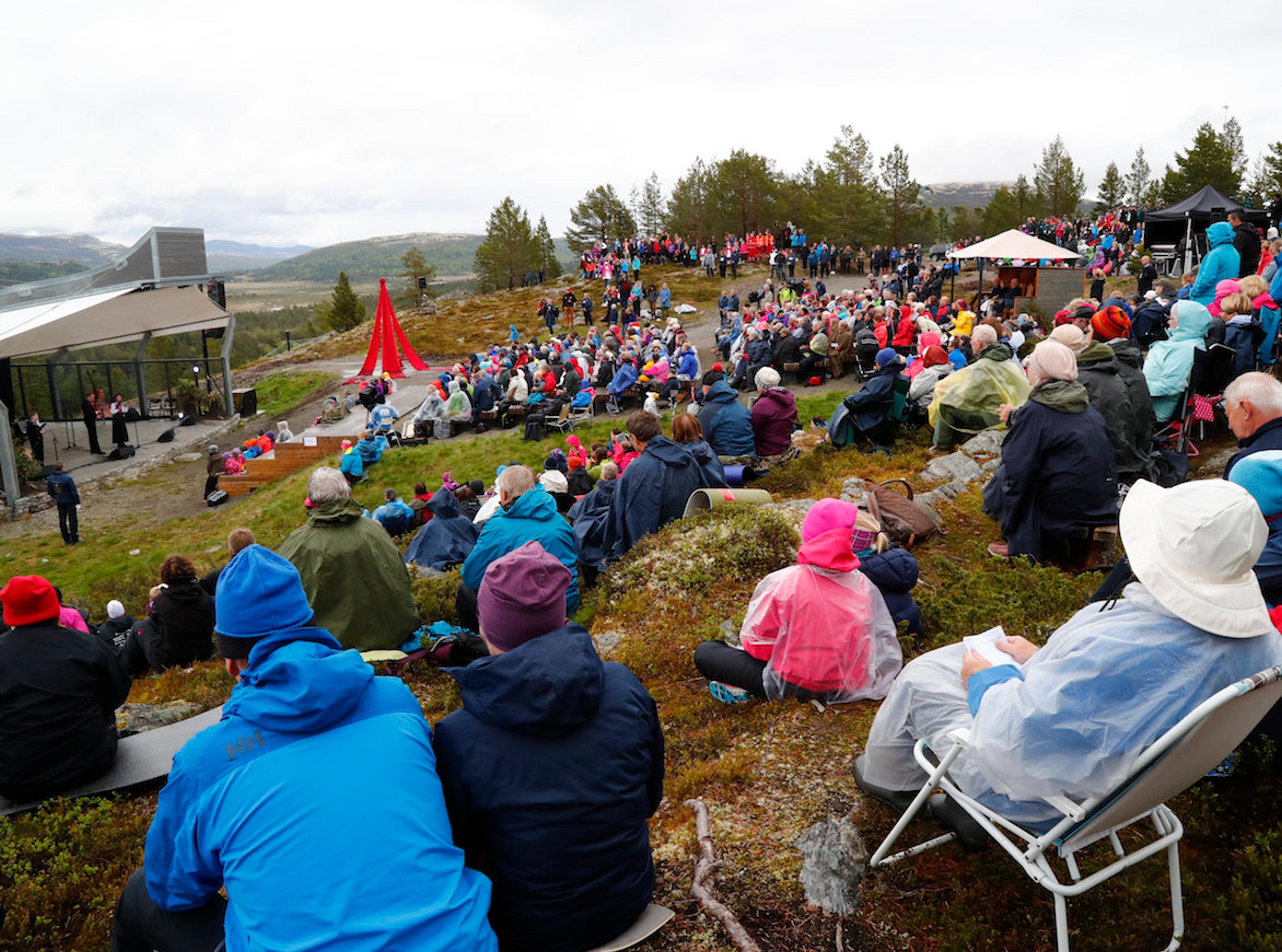 Det hele gikk for seg på Høgfjellsscena på Kvamsfjellet. Her inviterte kommunen til friluftskonsert i naturskjønne omgivelser ved Rondane - åpen for alle som ønsket å ta del i feiringen av Kongeparets 80-årsdager.