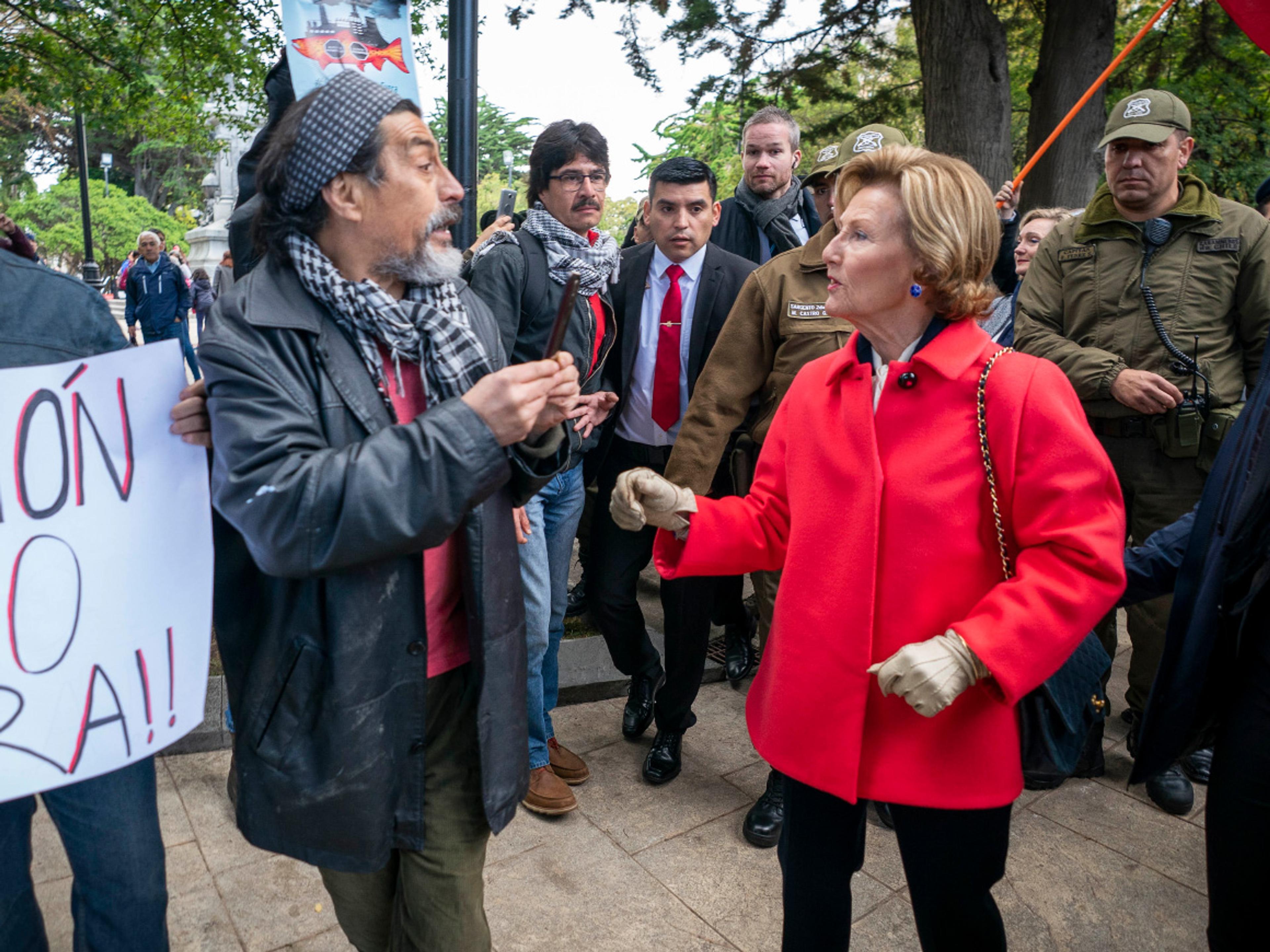 Etter åpningen av seminaret, ble Kongeparet ønsket offisielt velkommen til Punta Arenas med både nasjonalsanger og tradisjonell sang og dans. Seremonien fant sted på byens sentrale plass der det også var møtt fram demonstranter som ønsket å protestere mot norsk fiskeoppdrett. Kongen og Dronningen stanset opp og snakket med demonstrantene.