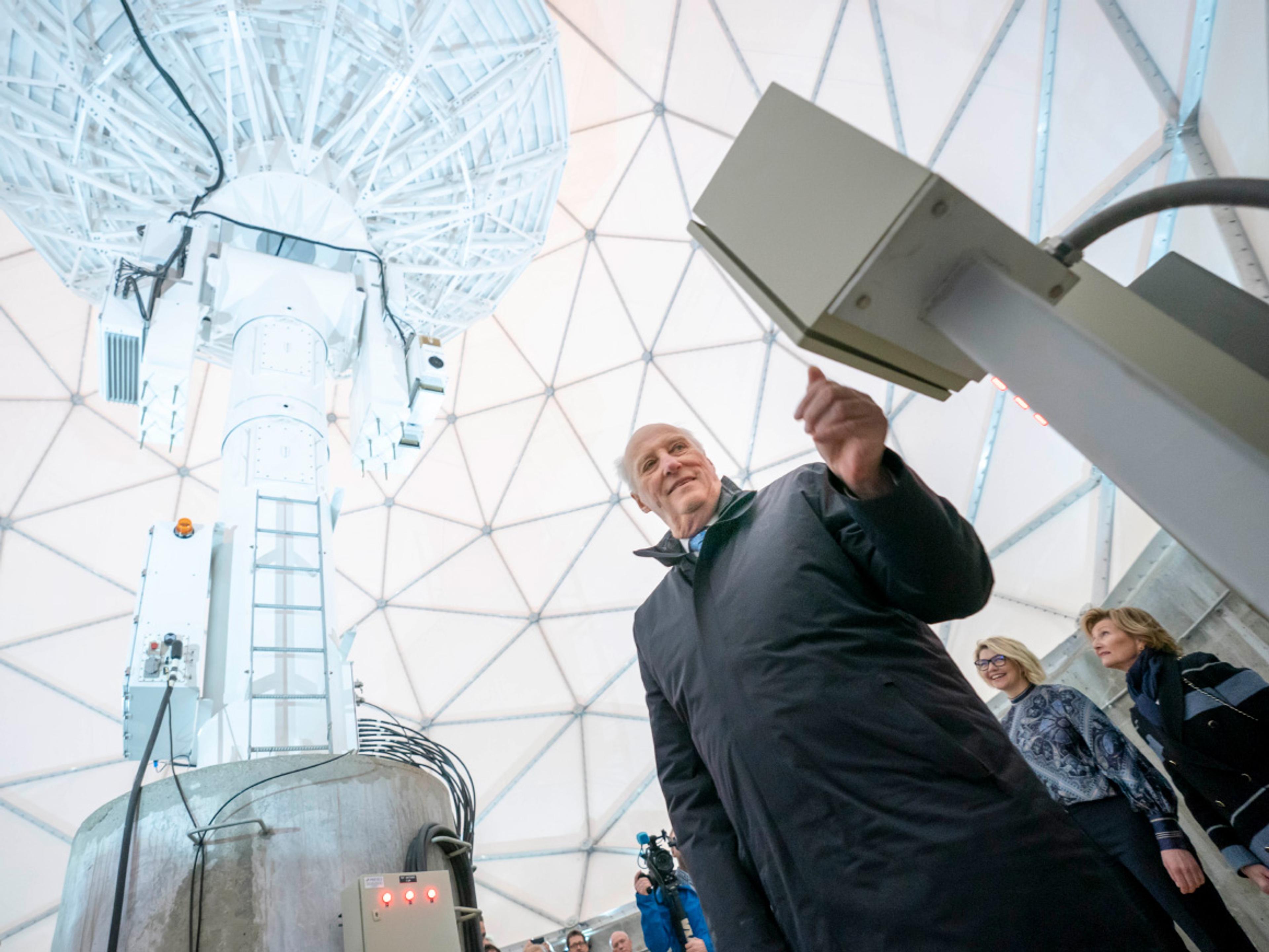 Kong Harald fikk æren av å foreta den offisielle åpningen av de nye antennene. De er allerede tatt i bruk, blant annet til å avsløre ulovlig fiske i havet utenfor Chile og Peru. Kongeparet signerte også det som skal bli en bronseplakett på stedet.