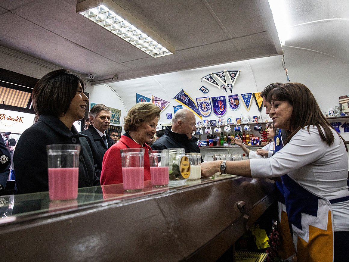 Etter den høytidelige nøkkelseremonien, tok ordføreren Kongeparet med på en liten gatevandring i Punta Arenas. Spaserturen gikk blant annet til den fargerike kaféen Kiosko Roca, som serverer "picados" - små ostesmørbrød og andre spesialiteter som er typiske for området. Stedet er et samlingspunkt for byens befolkning, og har ligget her siden 1950-tallet.