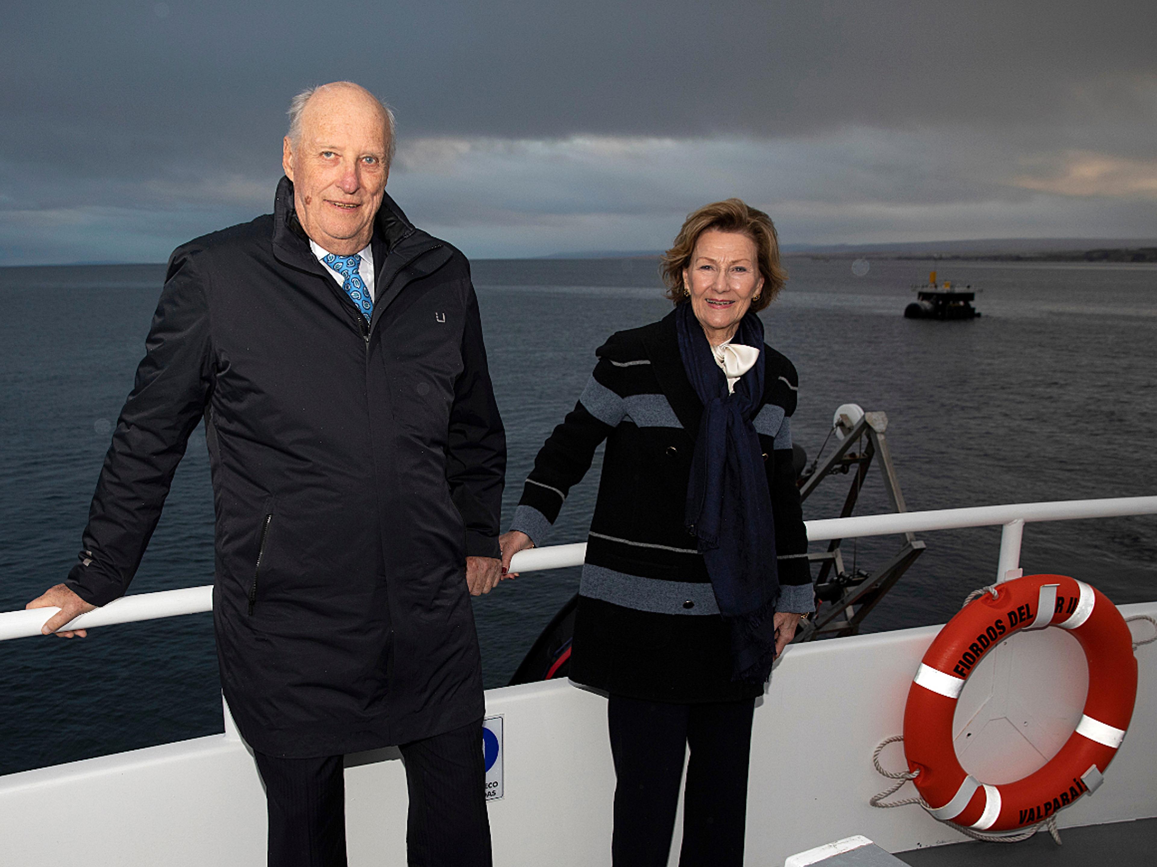 Allerede i dag morges sa Kongen seg imponert over utsikten til Magellanstredet. Som polarentusiast og seiler hadde han sett spesielt fram til å besøke Punta Arenas. Magellanstredet skiller det søramerikanske fastlandet fra Ildlandet. Stredet er vanskelig å navigere, men var likevel lenge en sikrere rute mellom Stillehavet og Atlanterhavet for skip som ønsket å unngå å runde værharde Kapp Horn.