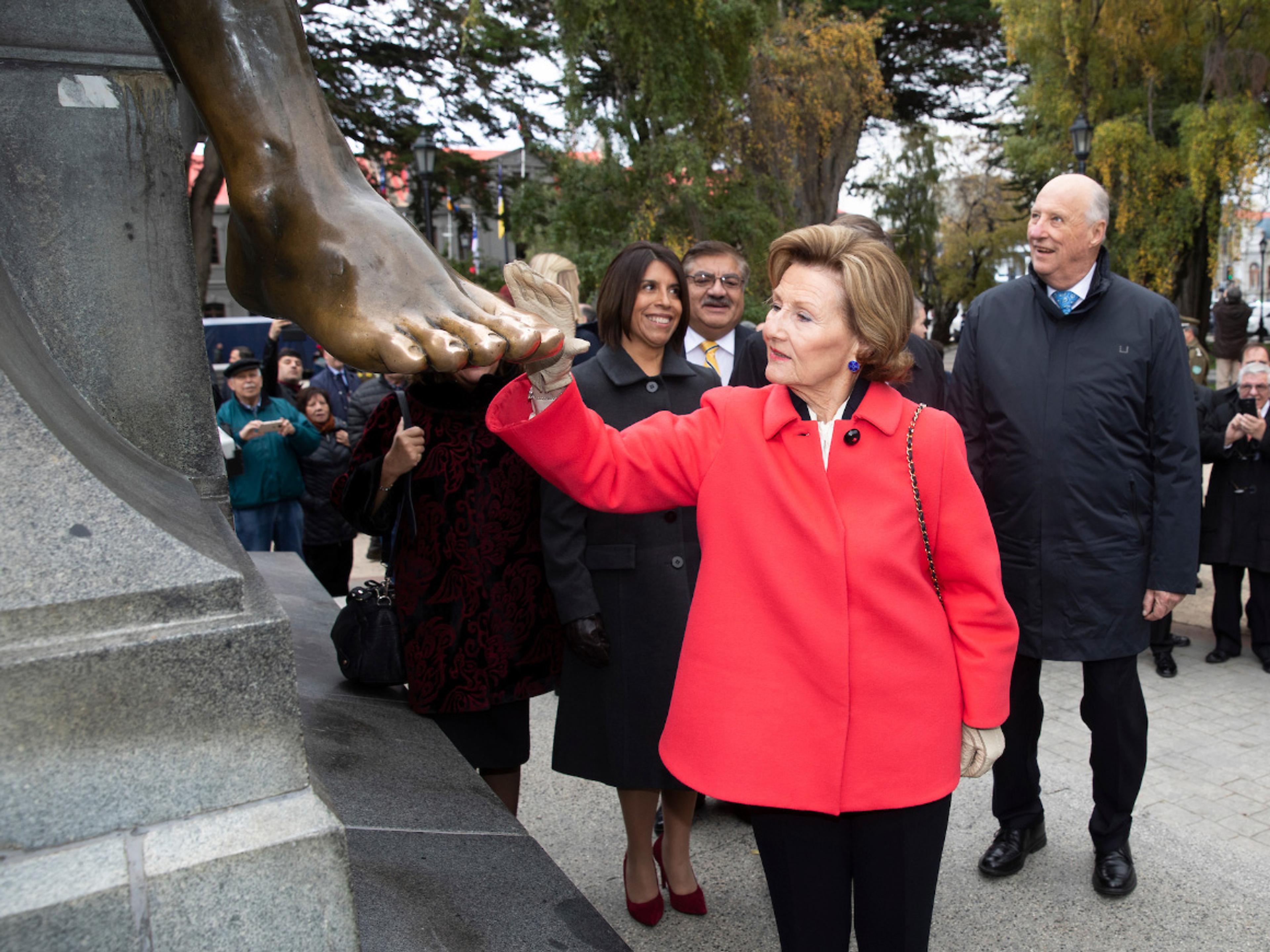 Ordføreren i Puntas Arenas, Claudio Radonich fortalte Kongen og Dronningen om statuen, før han ledsaget Kongeparet til rådhuset hvor Kongeparet ble overrakt byens nøkler.