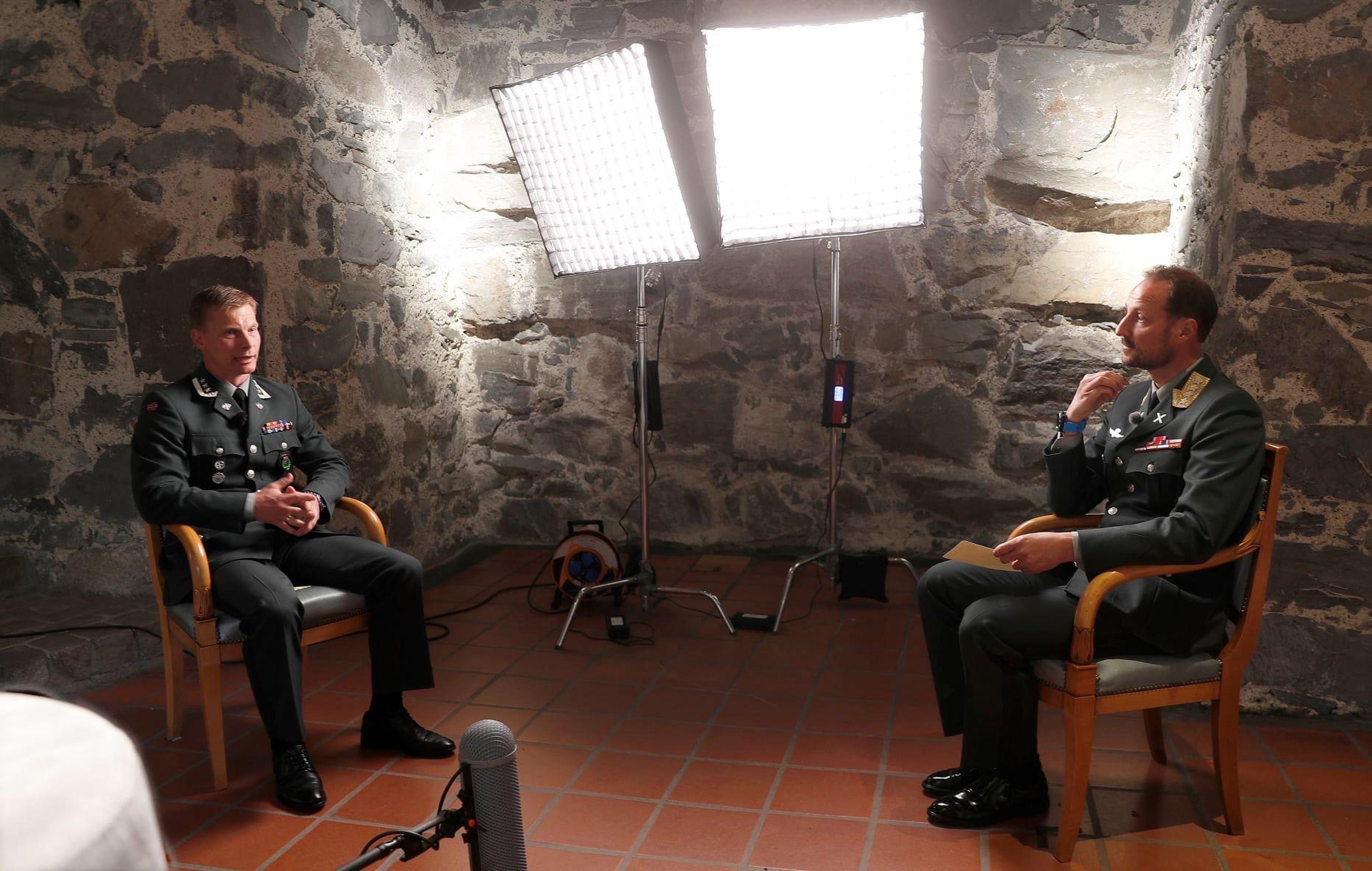 Kronprinsen og Kårsten snakker blant annet om hvordan erfaringene fra internasjonale operasjoner kan brukes nasjonalt, om etterretning som fag og den store tragedien på Gjerdrum. Samtalen ble spilt inn tidligere i vår på Akershus Festning.