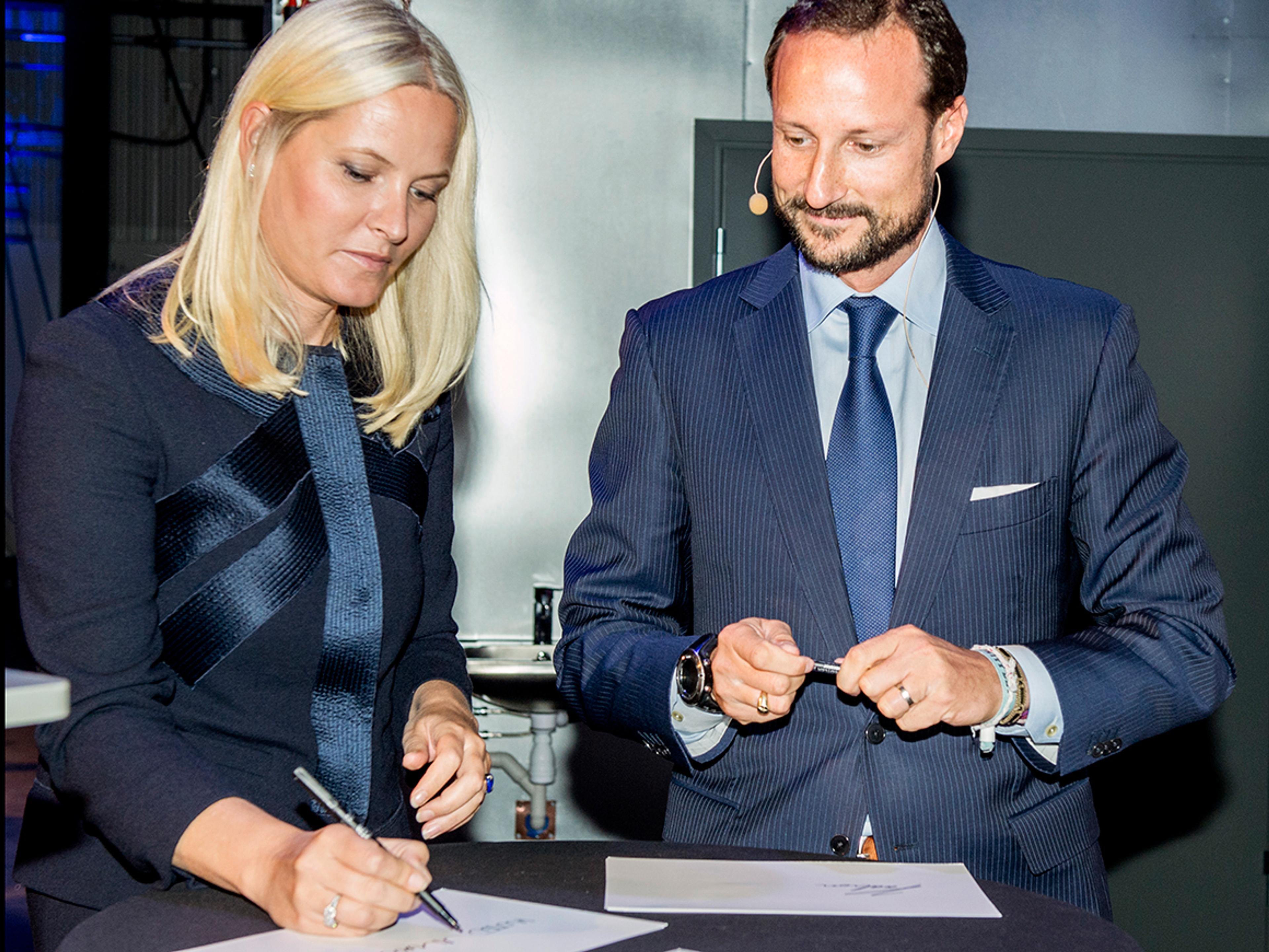 Konsernsjef Unni Steinsmo viste Kronprinsparet det nye anlegget som huser hele 7 ulike laboratorier, og Kronprinsen og Kronprinsessen signerte begge for en plakett til minne om åpningen.