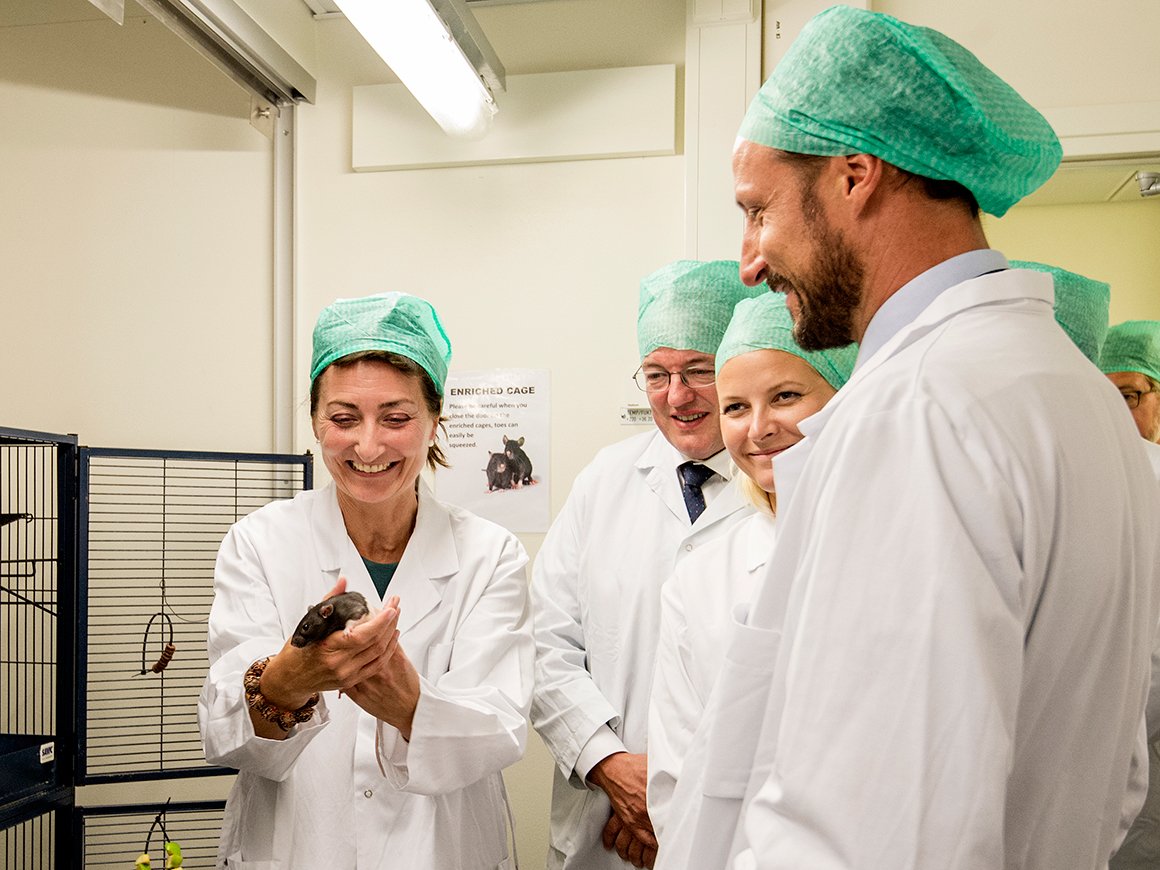 Kronprinsparet fikk orienteringer om rottenes boforhold, og noen av instituttets ulike eksperimenter med rotter, mus og sebrafisk.