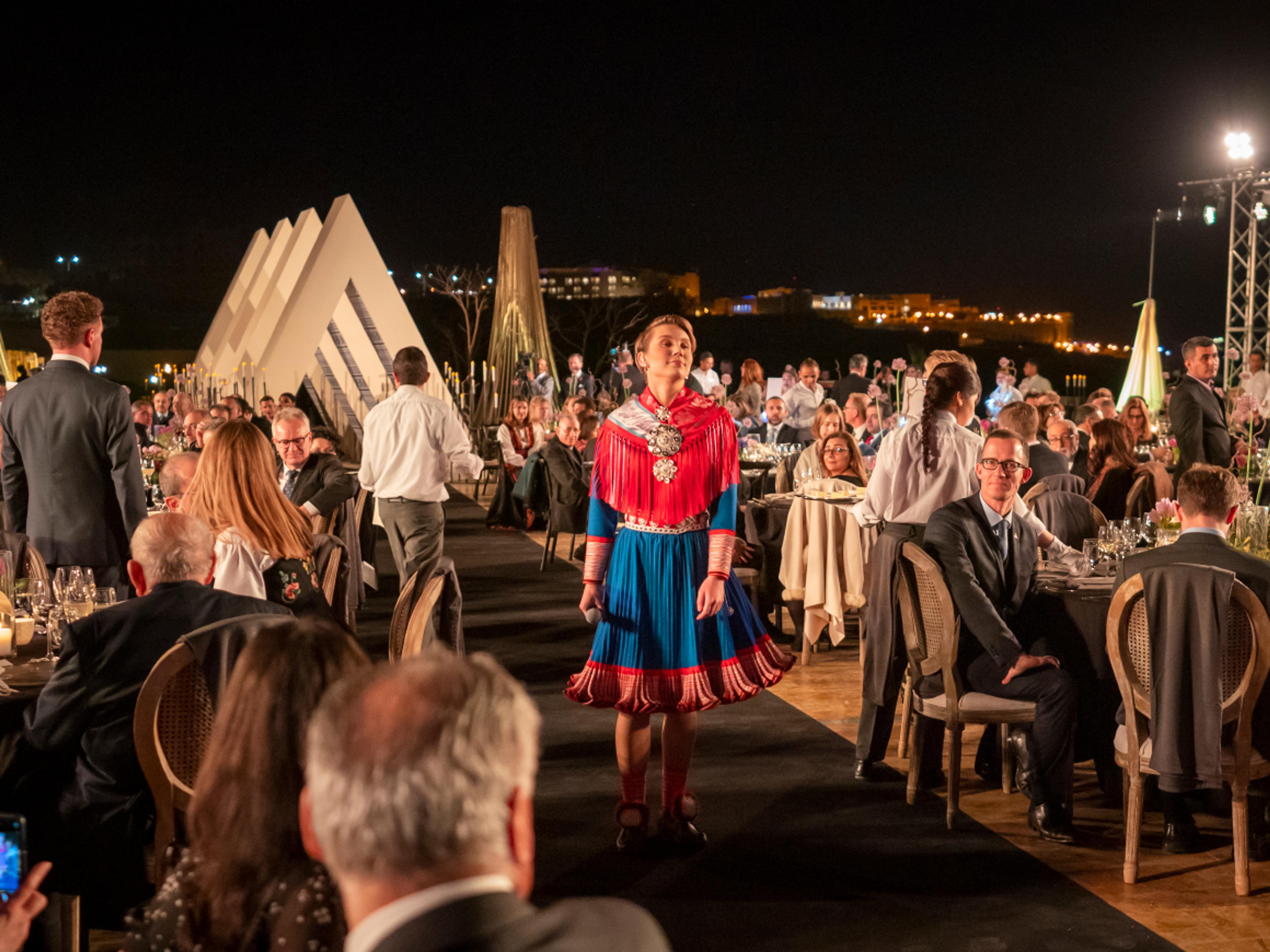 I kveld er Kong Harald og Dronning Sonja vertskap for en norsk-jordansk vennskapsmiddag. Da kommer representanter for politikk, administrasjon, næringsliv, forskning, kultur og organisasjonsliv sammen.