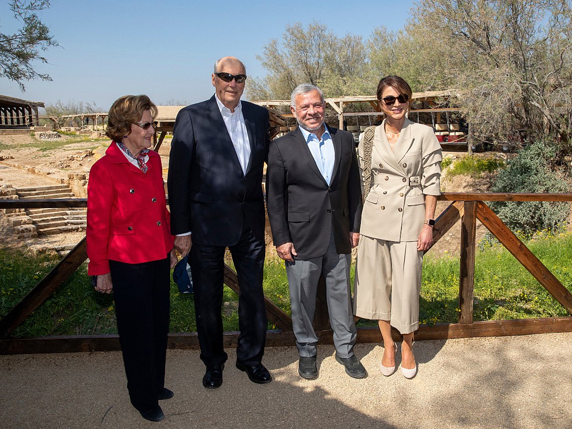 Jordan og Kong Abdullah II har en helt spesiell rolle som forvalter av de kristne og muslimske helligdommene i Jerusalem. Det finnes også viktige hellige steder på jordansk grunn, og ett av dem er Jesu dåpssted. Kong Harald og Dronning Sonja fikk anledning til å besøke helligdommen i dag, ledsaget av det jordanske kongeparet og Prins Ghazi bin Muhammad.