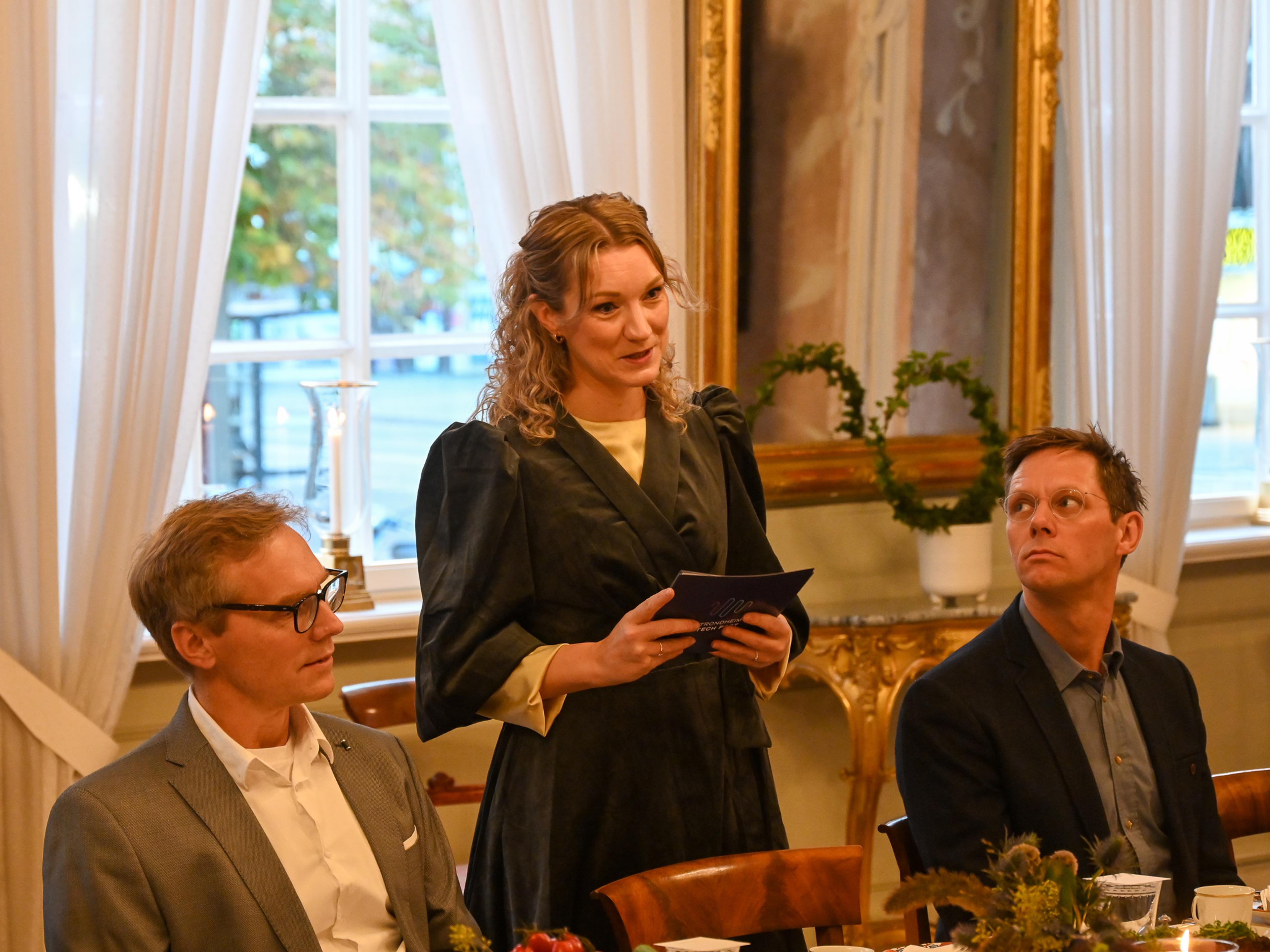 Etter å ha ønsket gjestene velkommen til den offisielle kongeresidensen Stiftsgården ga Kronprinsen ordet til daglig leder Karianne Tung i Trondheim Tech Port. Foreningen jobber med å få de kloke hodene fra forskning og næringsliv i Trondheim til å jobbe mer sammen.