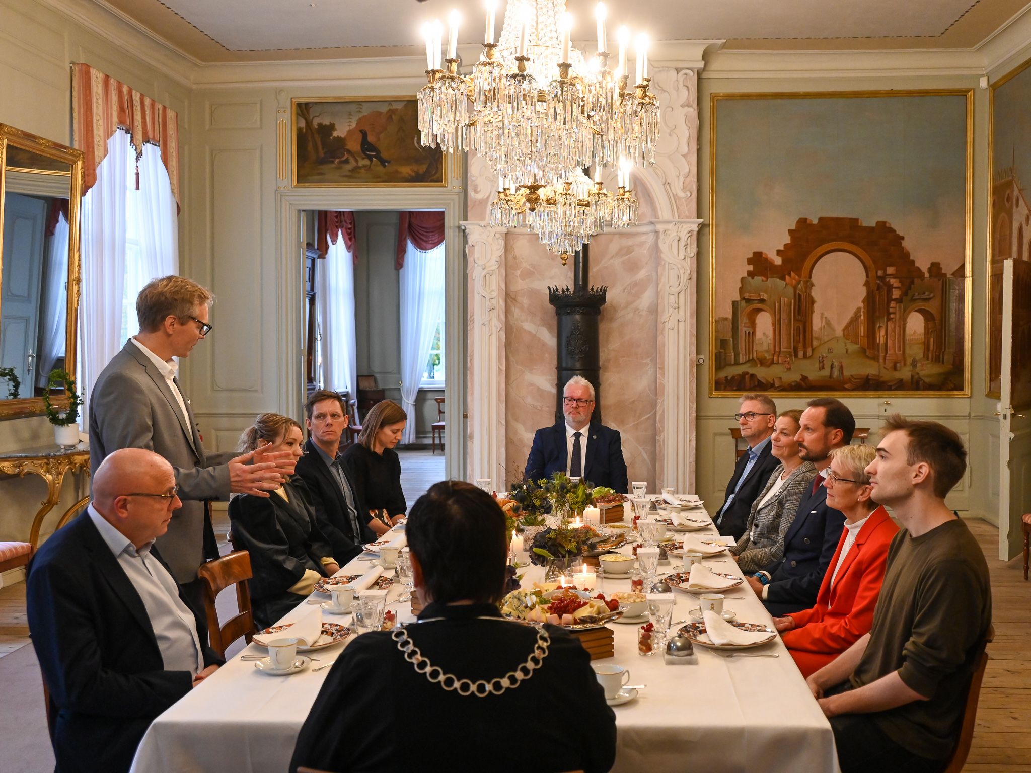 Mens frokosten ble servert, inviterte Kronprinsen gjestene til å ta ordet og kommentere hvordan ulike miljøer i Trondheim samarbeider om innovasjon og teknologi, og særlig på området kunstig intelligens og generell digital innovasjon.
