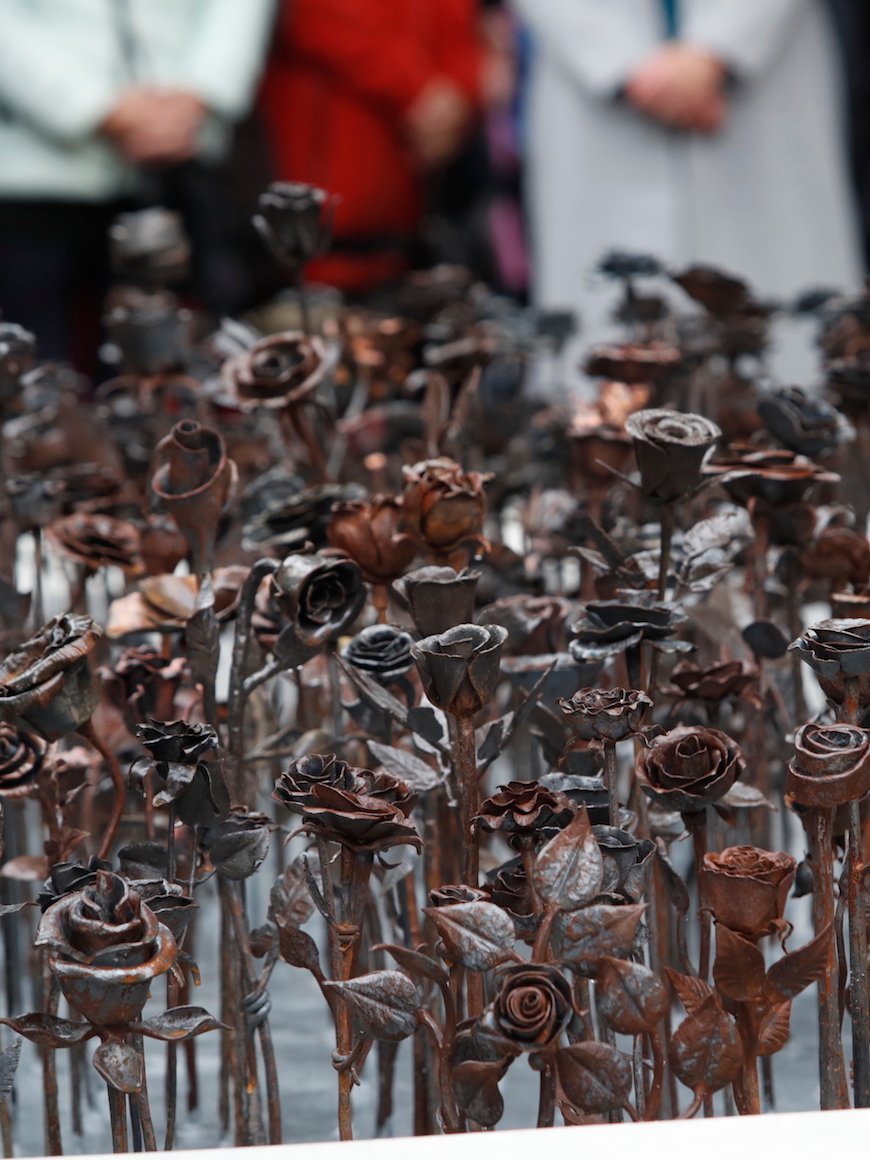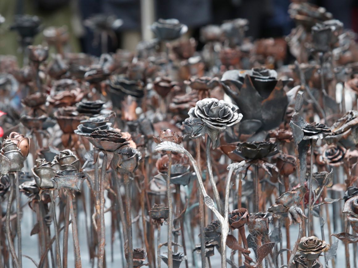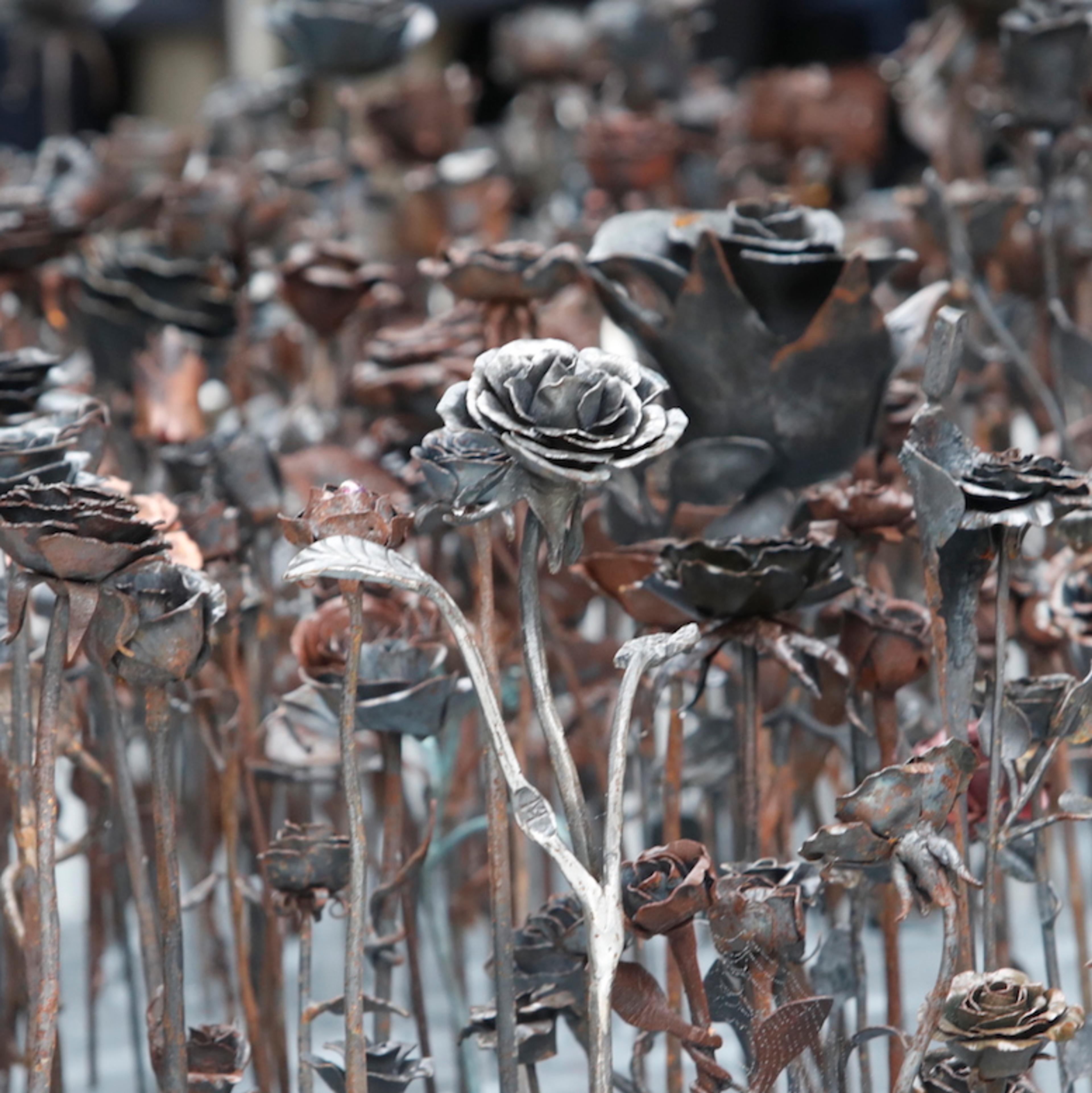 "Jernrosene" er en sirkel av hvit betong der rundt tusen roser er montert. De minste rosene er ikke mer enn 10 cm høye, de største veier opp mot 10 kg. De rosene som er smidd av overlevende og pårørende er plassert i midten av minnesmerket. De andre rosene omfavner og beskytter dem.