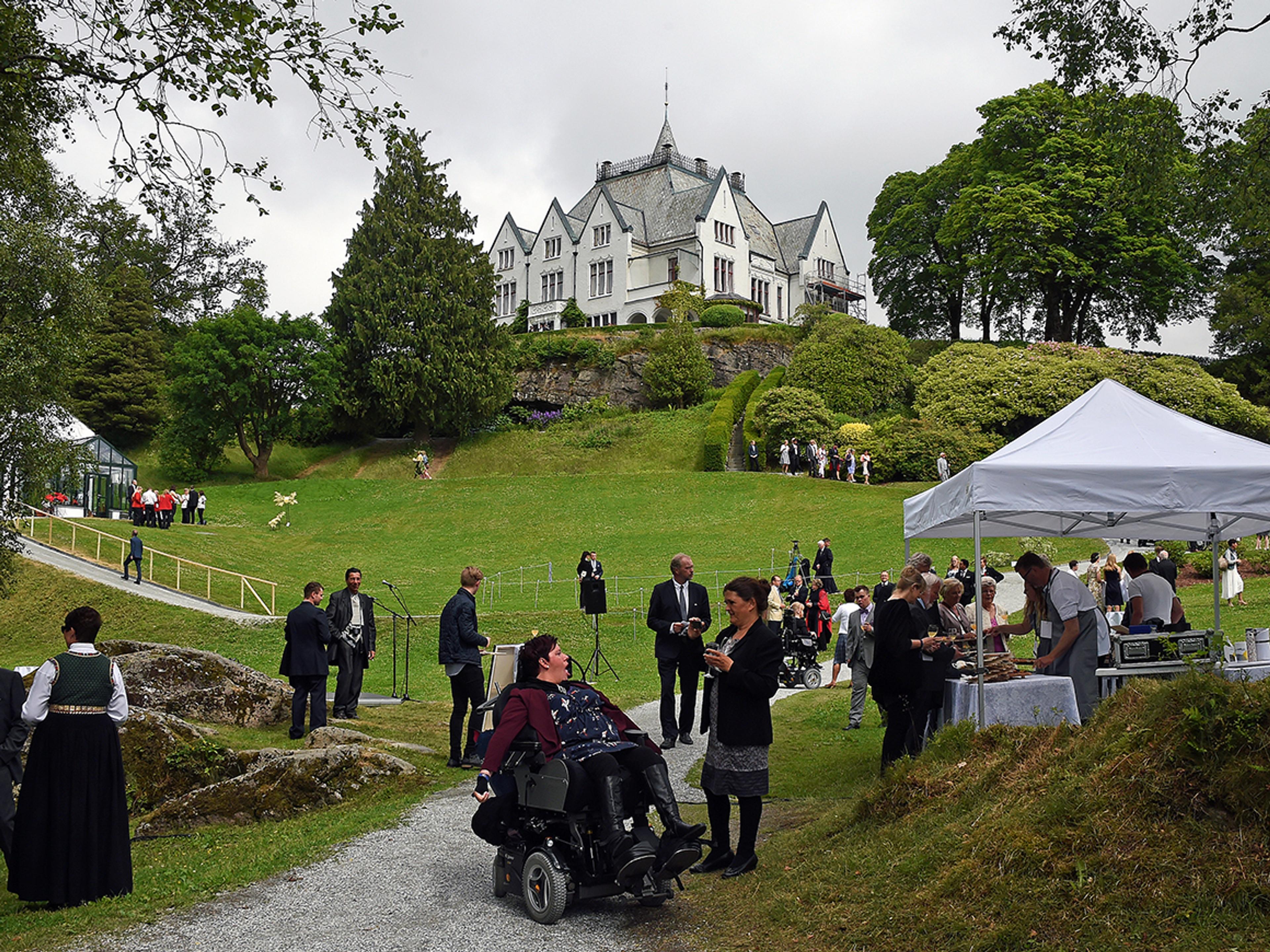 Gamlehaugen er Kongefamiliens offisielle residens i Bergen. Den flotte parken omkring satte en fin ramme om hagefesten der 300 gjester fra ulike deler av Hordaland var invitert.