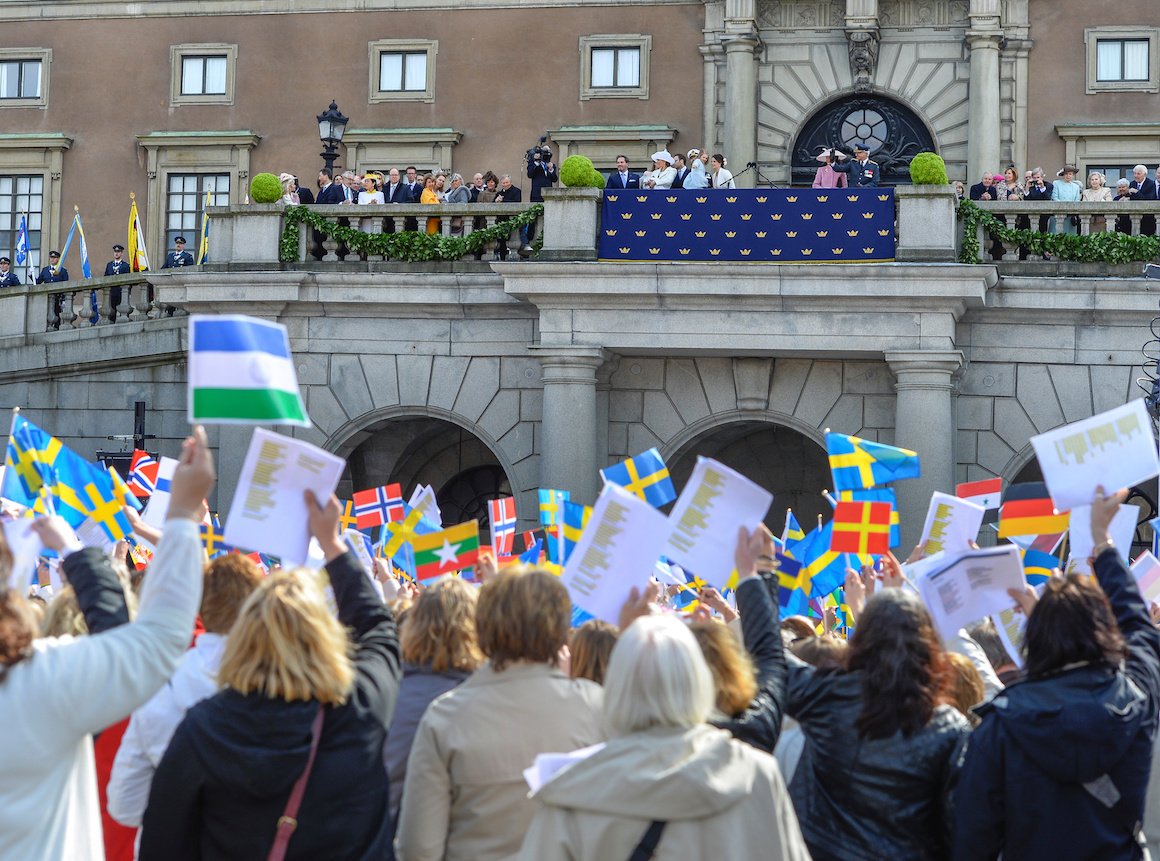 Før lunsjen i Stockholms stadshus var Prinsesse Märtha Louise, Ari Behn og alle de andre kongelige gjestene til stede på Leijonbacken der over 2000 mennesker hyllet fødselsdagsbarnet med sanger.