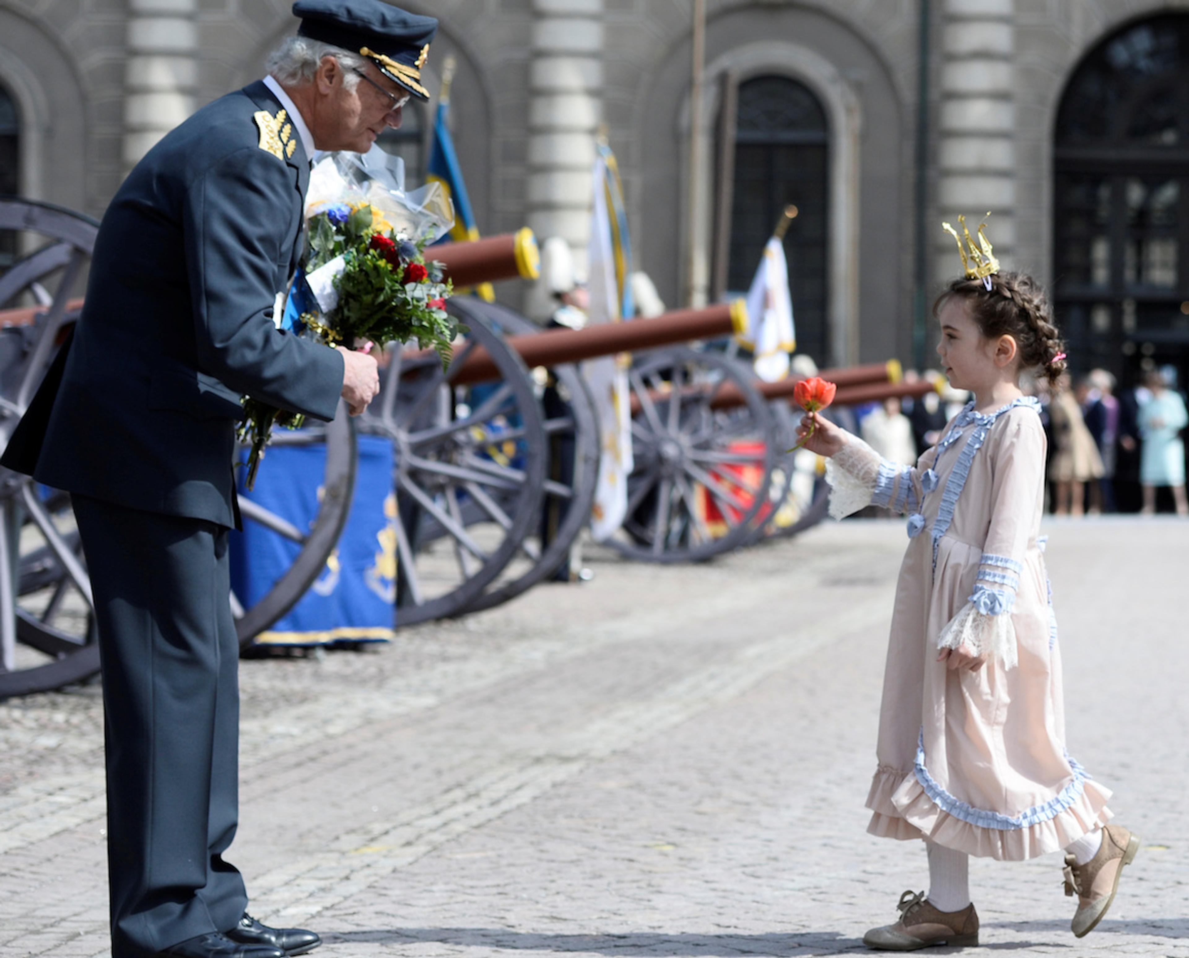 Fødselsdagsmarkeringen startet med en takksigelsesgudstjeneste i Slottskirken på Kungliga Slottet. Deretter var den svenske Kongen til stede ved vaktavløsningen i slottets ytre borggård. Det er tradisjon at den svenske monarken er til stede ved vaktskiftet på sin fødselsdag. Etter av skiftet har funnet sted får barn komme frem til Kongen med blomster og tegninger.