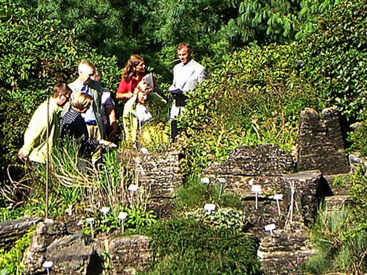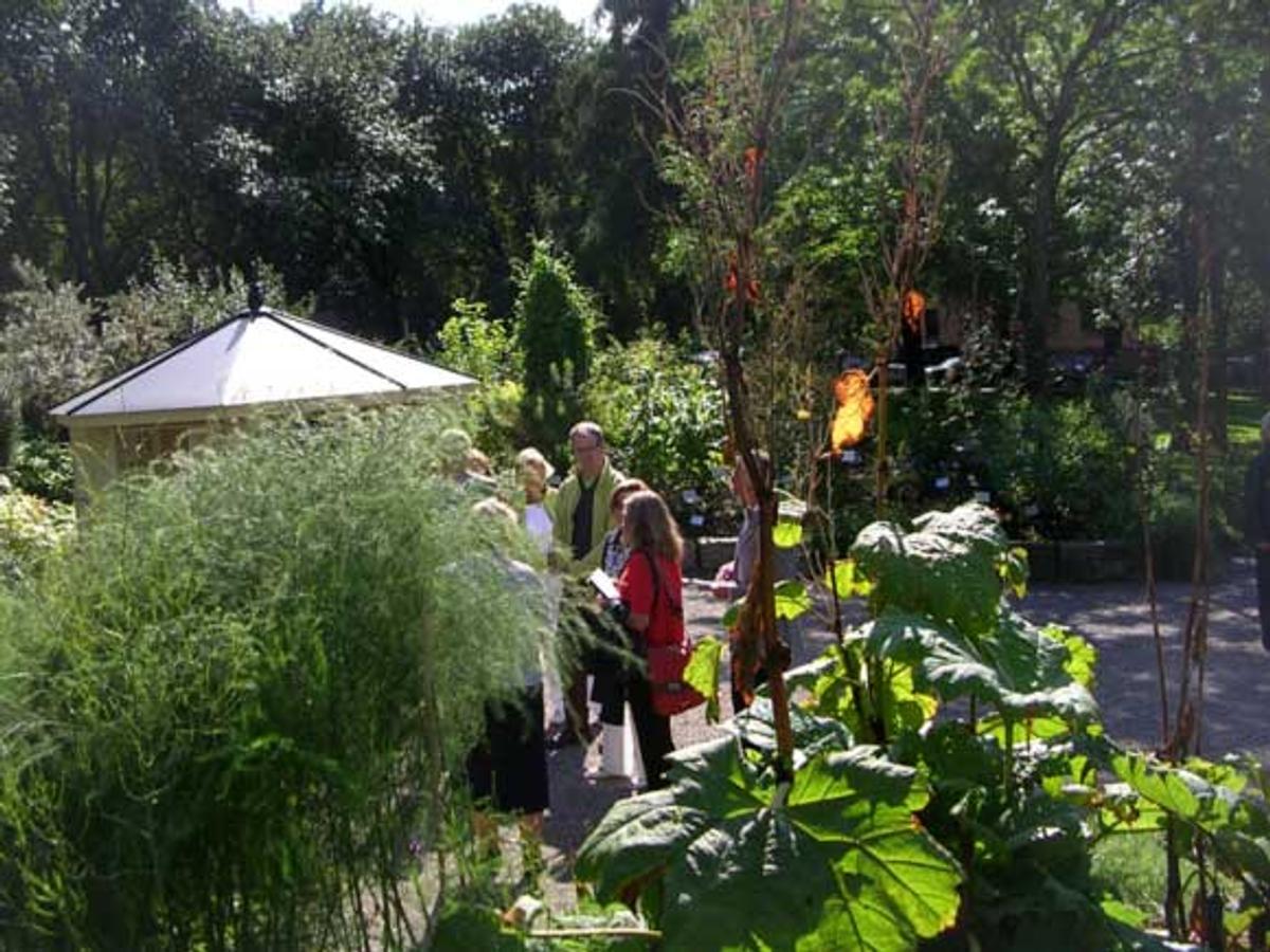 Etter foredragene fikk Dronning Sonja en omvisning i Botanisk hage av Tommy Tønsberg, redaktør av Norsk hagetidend.