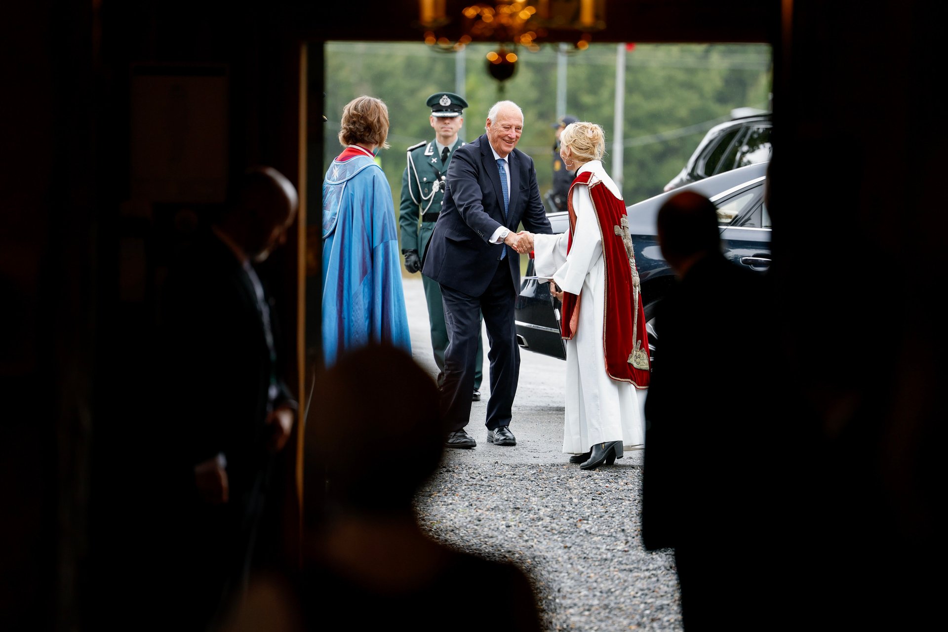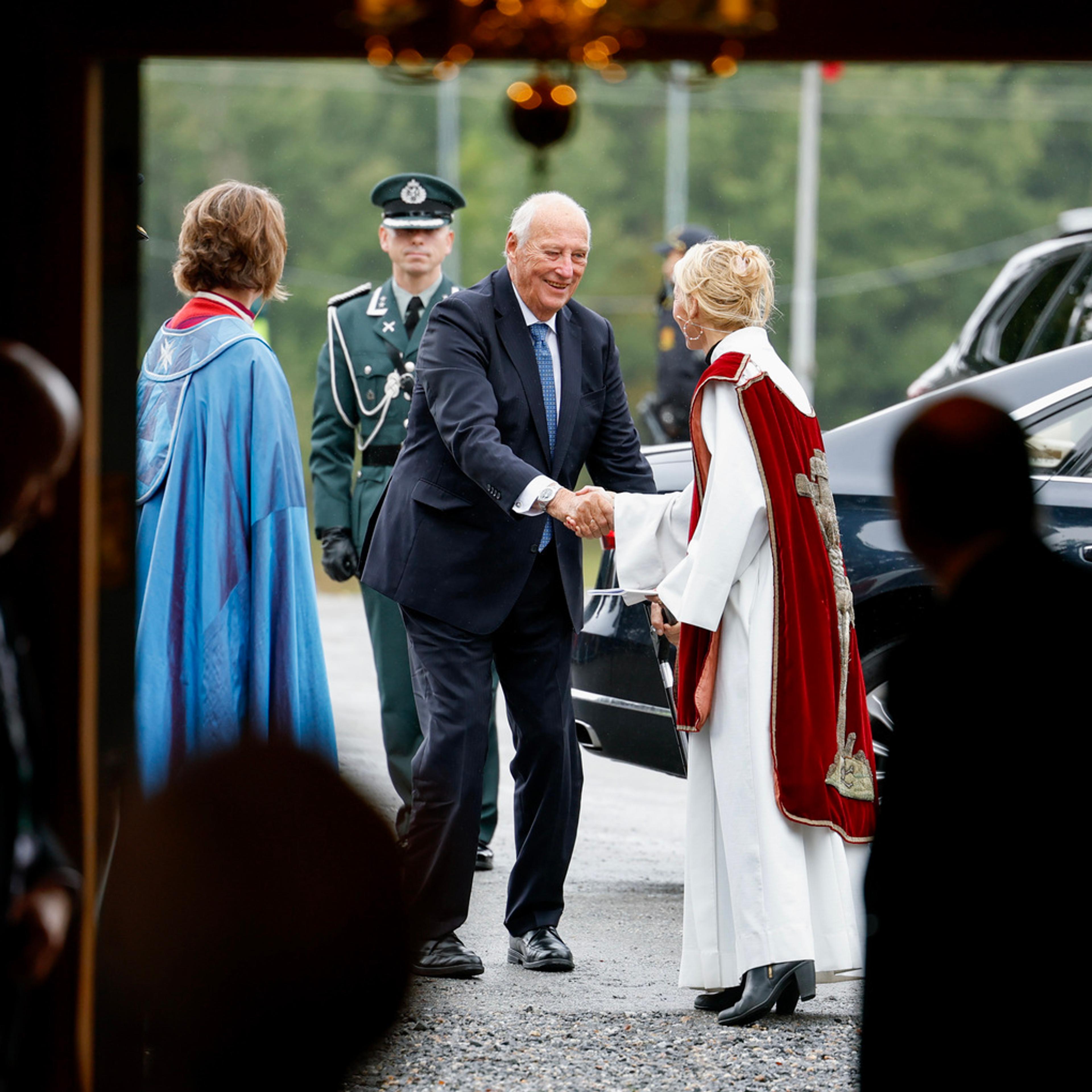 Kongen ble møtt med korpsmusikk da han ankom Nesodden. Utenfor kirken hadde mange samlet seg for å ta del i feiringen. På grunn av begrenset med plass inne i kirken, var det oppført storskjerm og satt ut benker på utsiden under gudstjenesten.