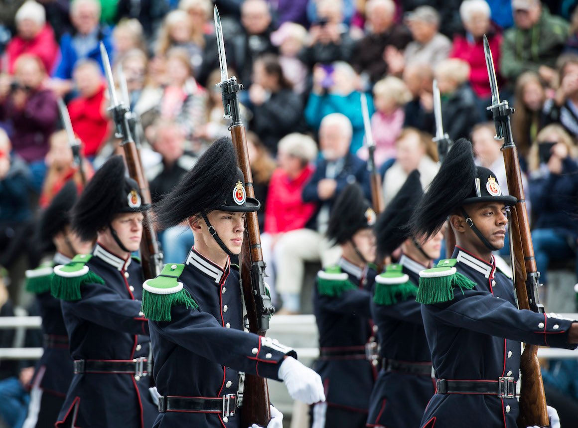 I ettermiddag var det folkefest ved Stavanger konserthus. Hans Majestet Kongens Gardes 3. kompani underholdt de fire tusen som etter hvert benket seg ved konserthuset med musikk og drill.