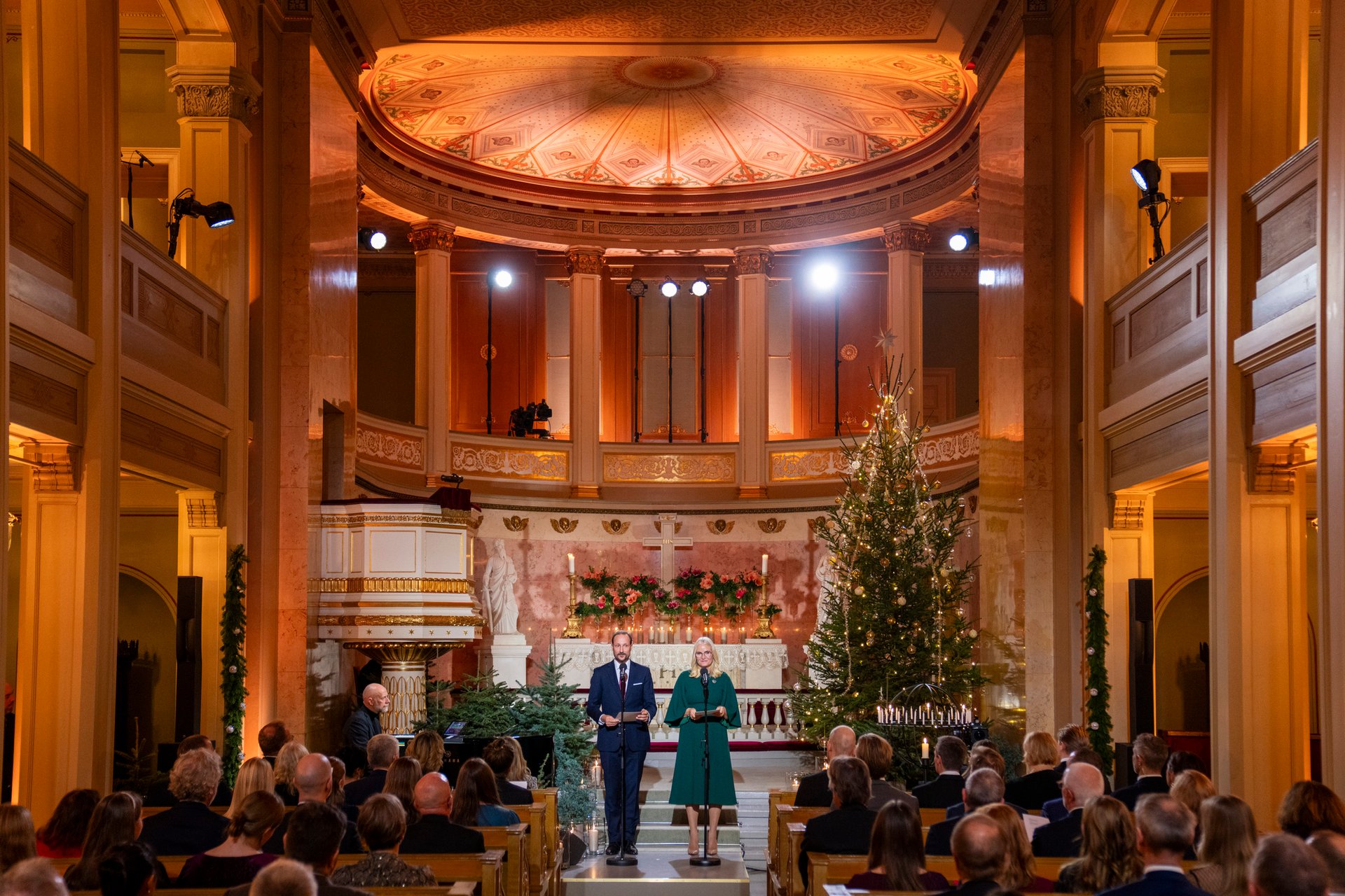Deres Kongelige Høyheter Kronprinsen og Kronprinsessen inviterte hjelpearbeidere fra humanitære organisasjoner til førjulssamling i Slottskapellet. Hennes Kongelige Høyhet Prinsesse Ingrid Alexandra og Prins Sverre Magnus deltok også.