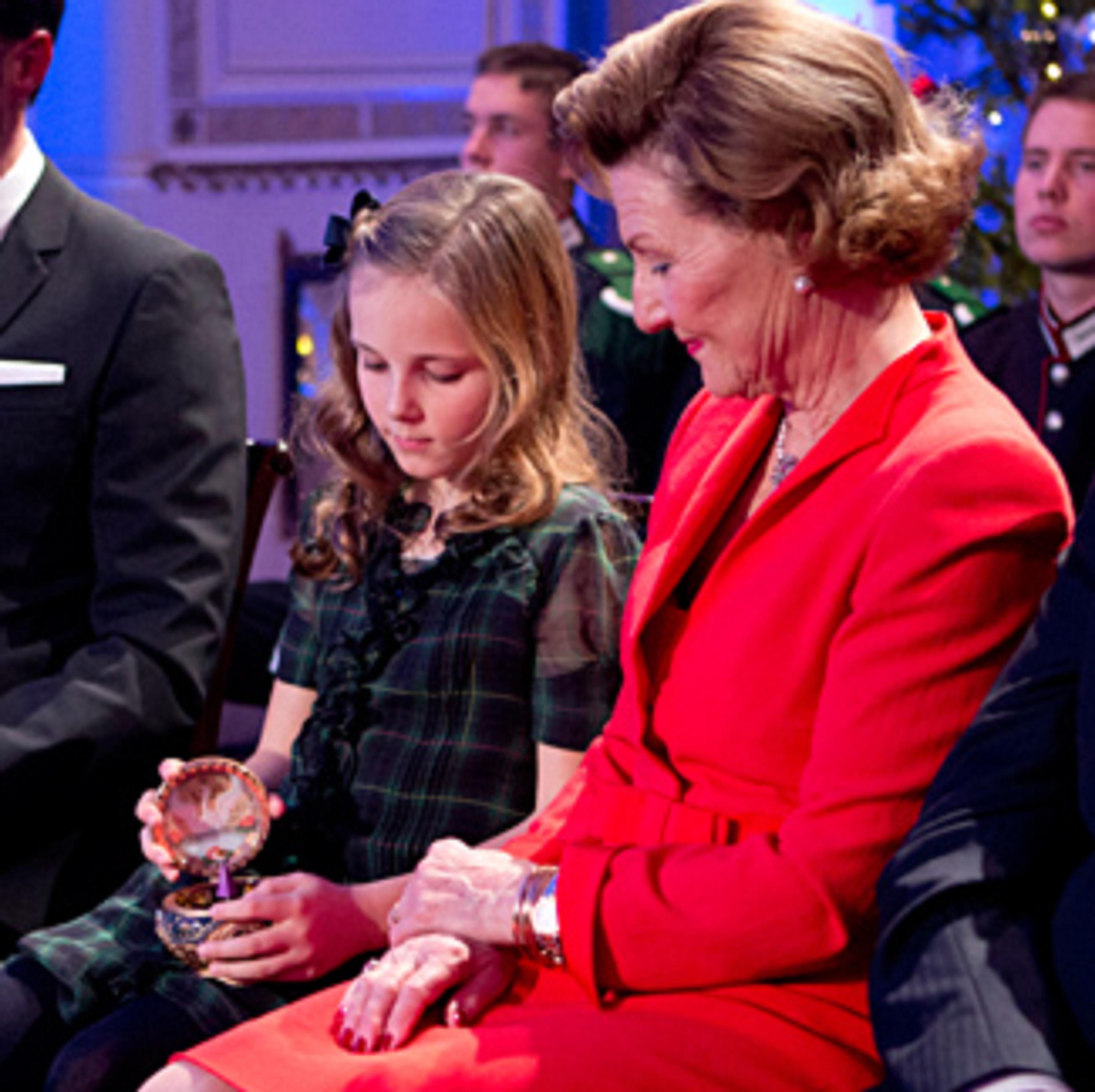 Et stykke ut i forestillingen overrakte Dronning Sonja et smykkeskrin til Prinsesse Ingrid Alexandra. Et smykkeskrin Prinsessen åpnet… Hva som skjedde da, må forbli en overraskelse for dem som vil se konserten på TV i kveld.